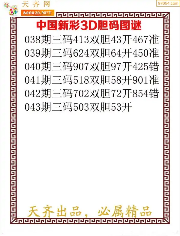 天齐网3d26年043期胆码图 胆:53
