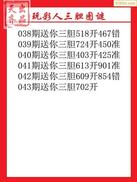 043期97654本站收集胆码出号预测