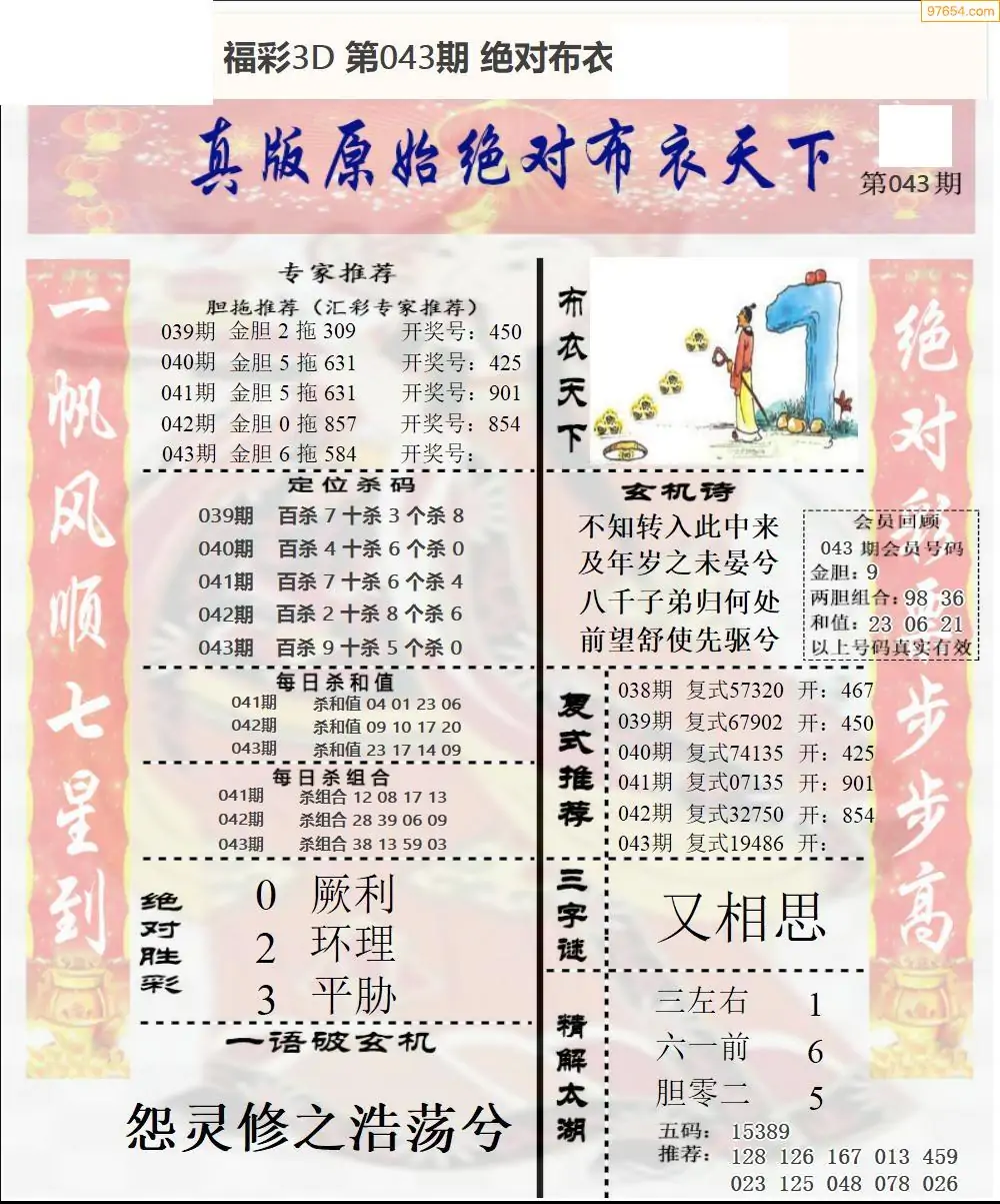 043期绝对布衣3d新版1