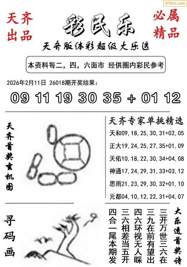 体彩大乐透019期天下无双本期号码综合分析