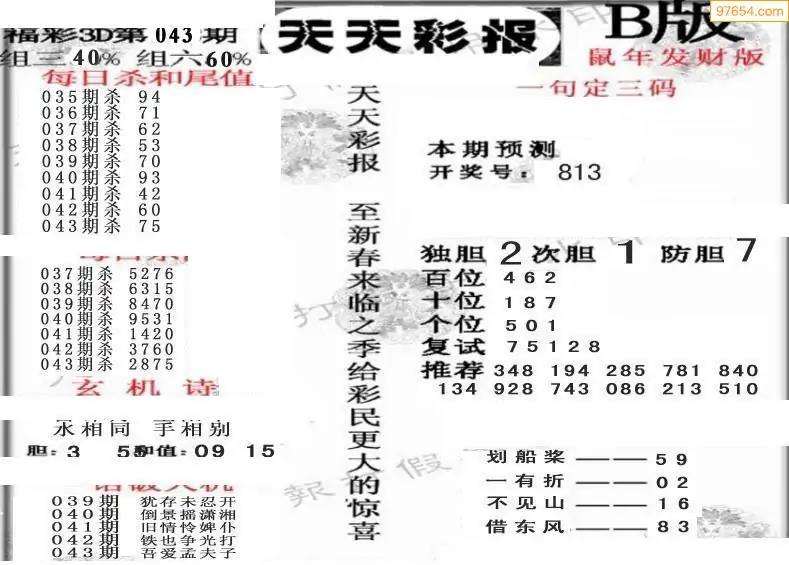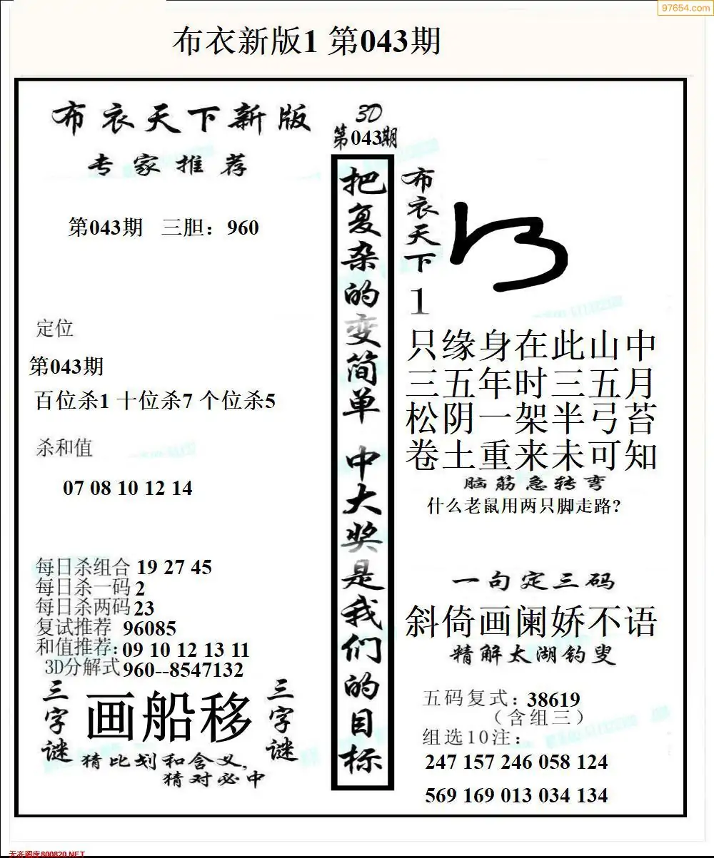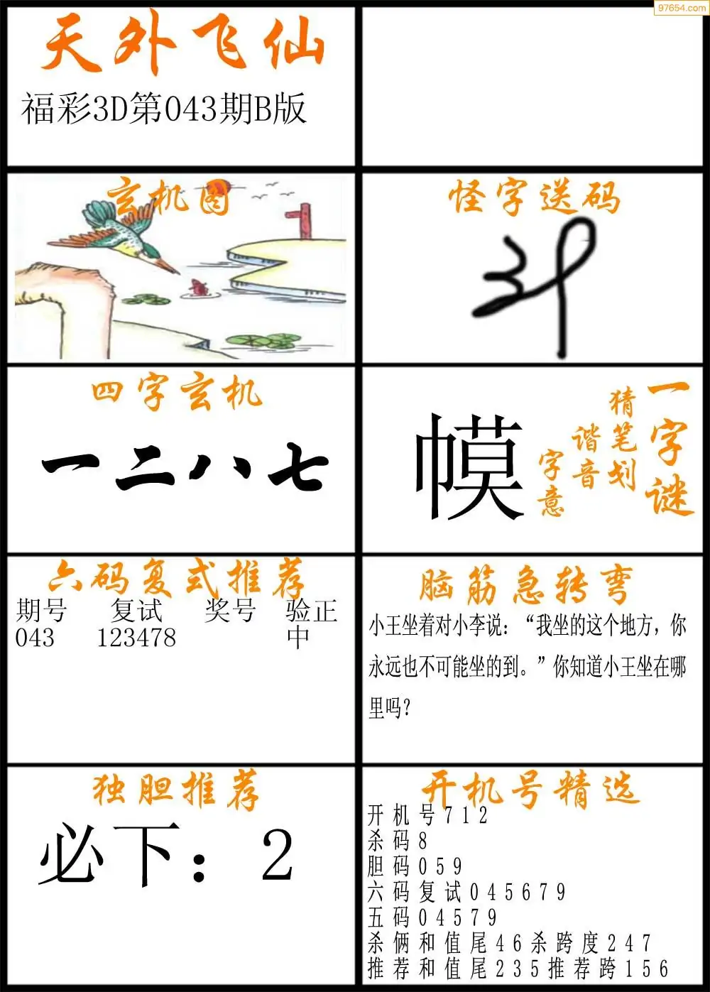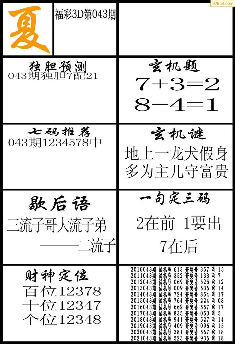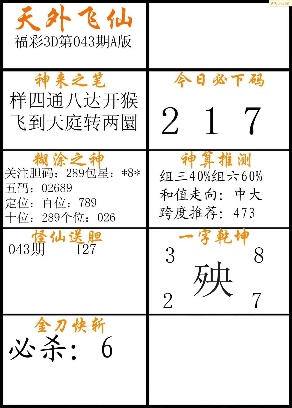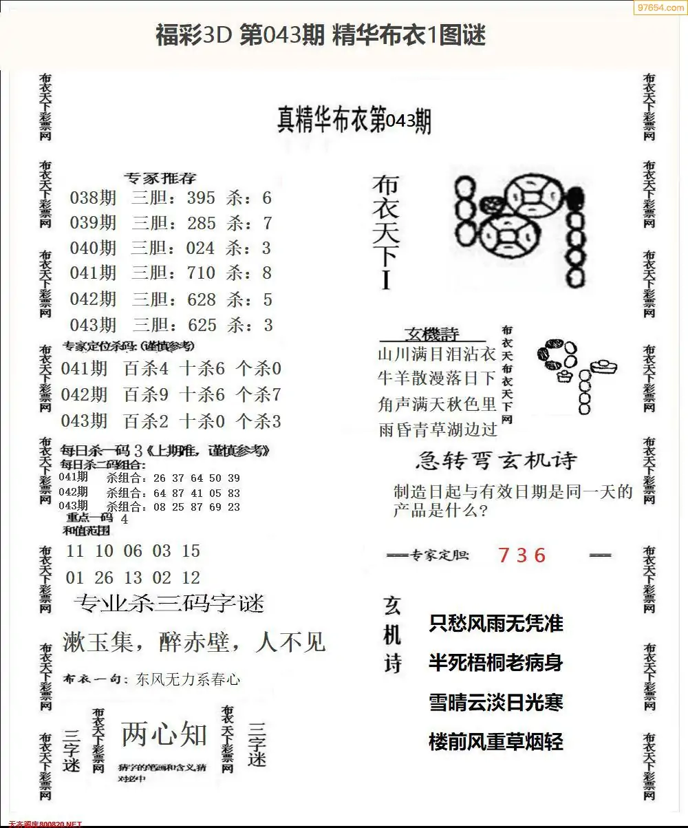 (2)26年043期本期3d图迷汇总_福彩3D图谜总汇图
