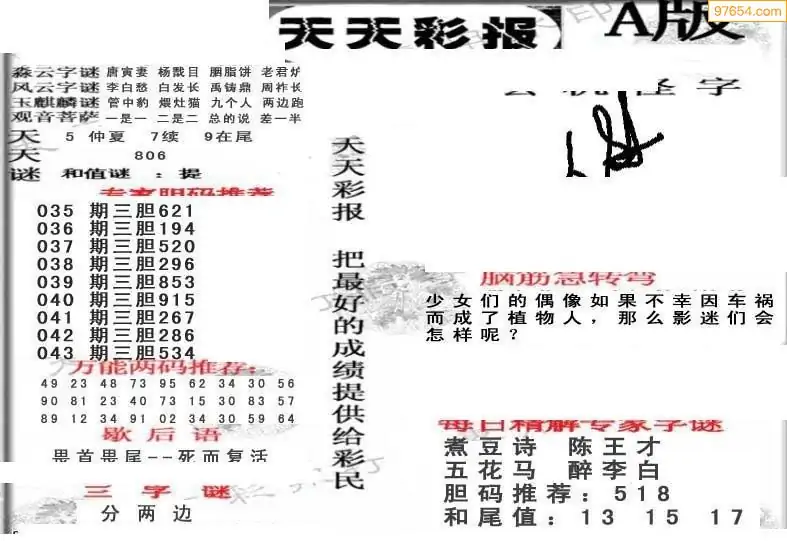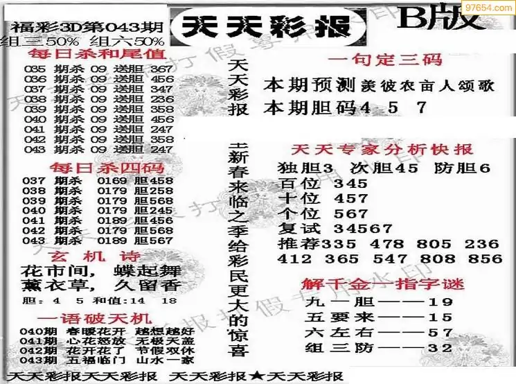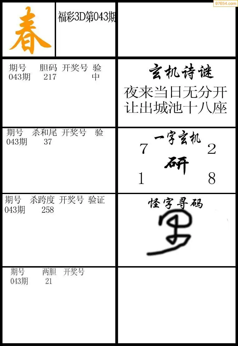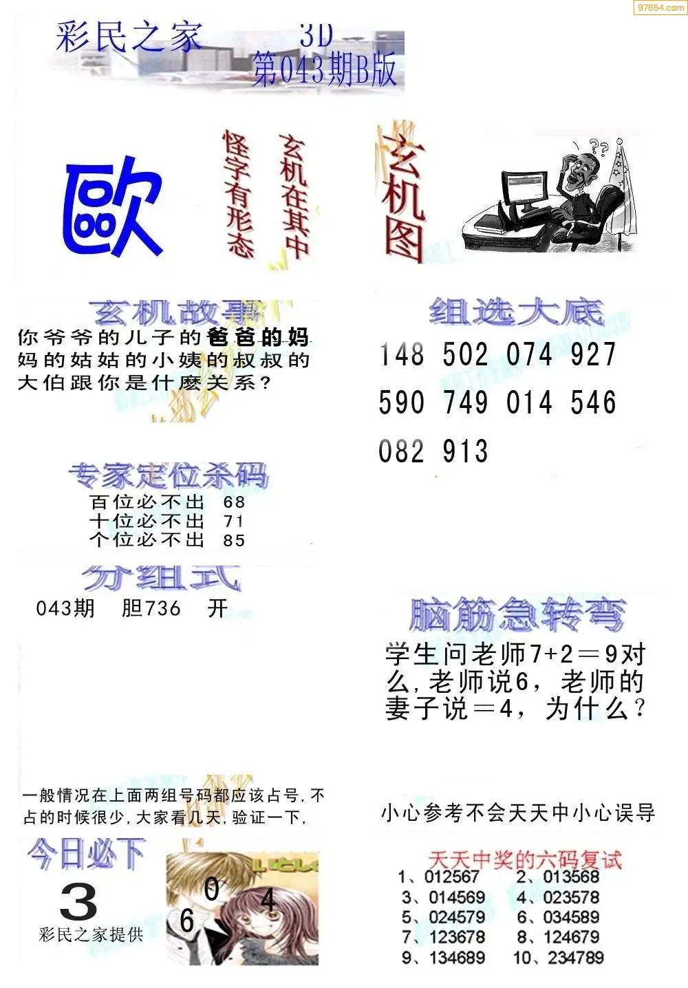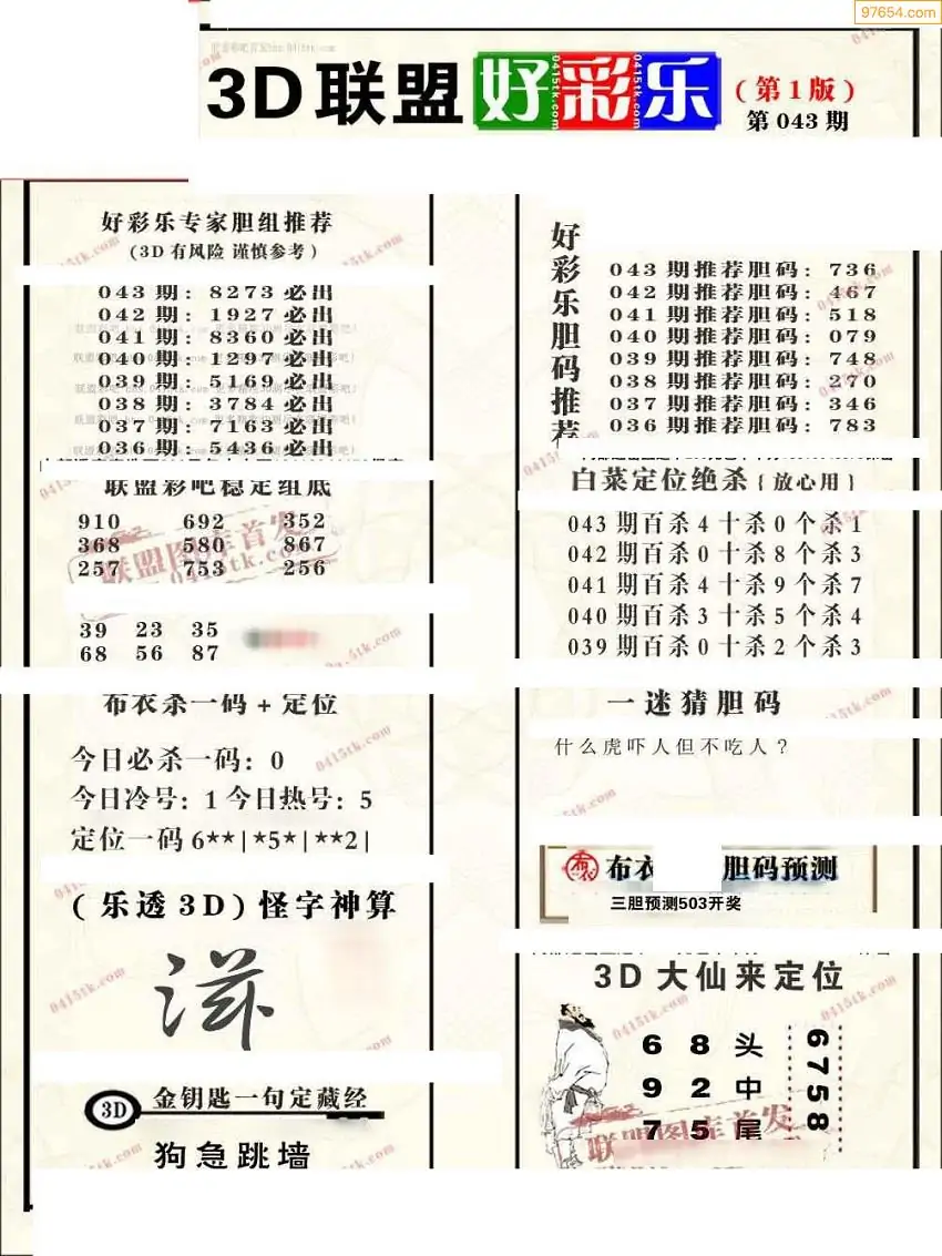 (3)2026043期3D预测总汇全图_福彩3d图谜字谜总汇