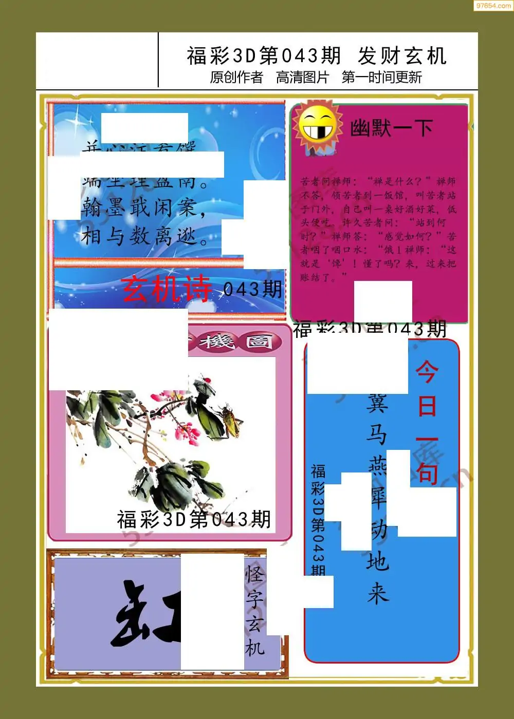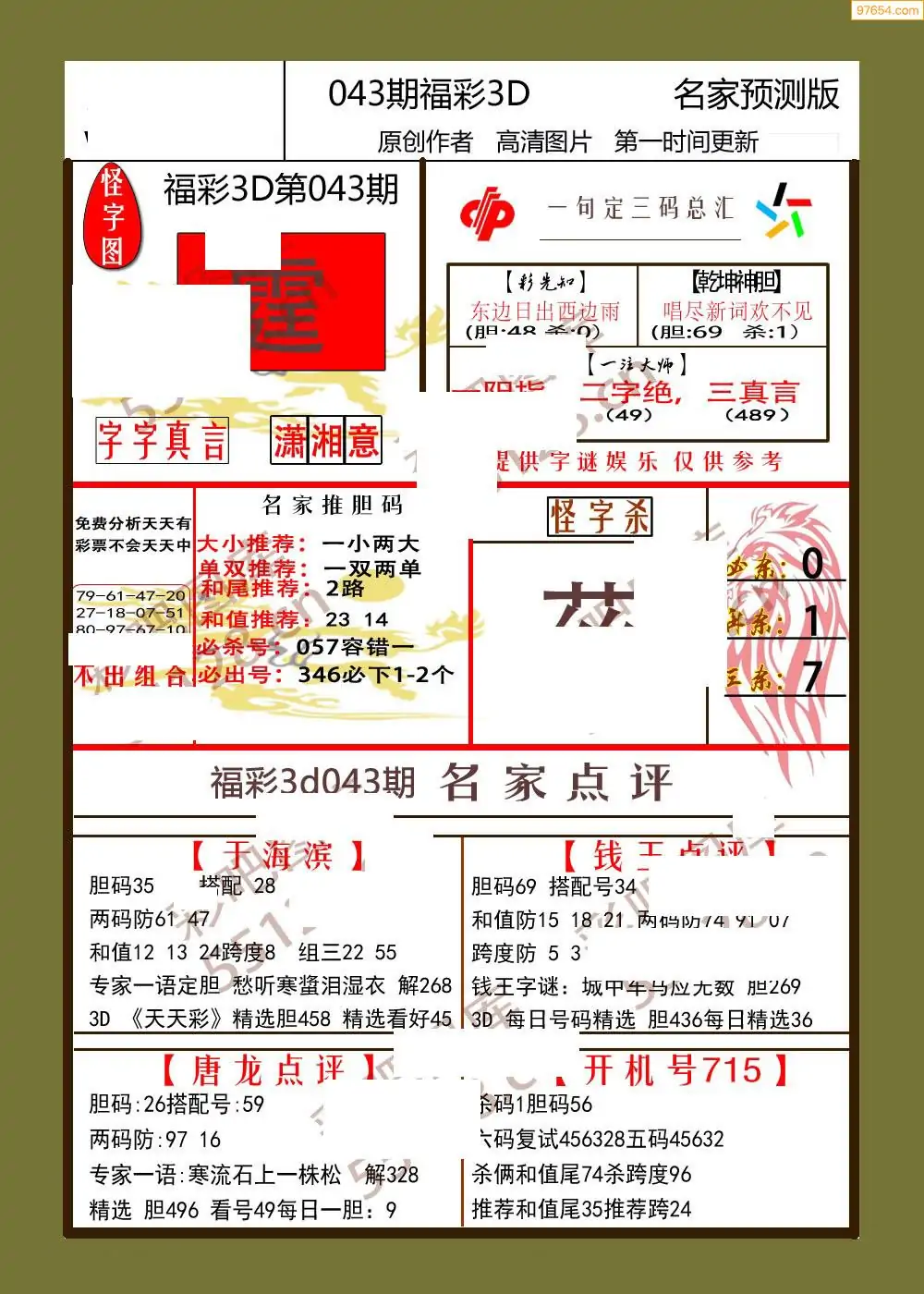 (3)2026043期3D预测总汇全图_福彩3d图谜字谜总汇