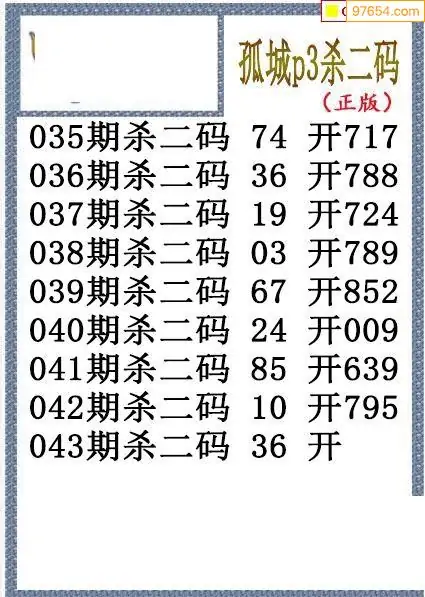 26年043期孤城本期杀码排3图谜