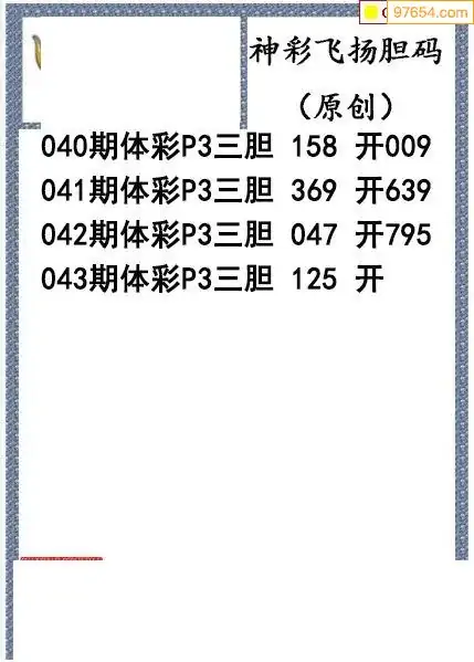 26043期神彩飞扬体彩P3三胆图谜