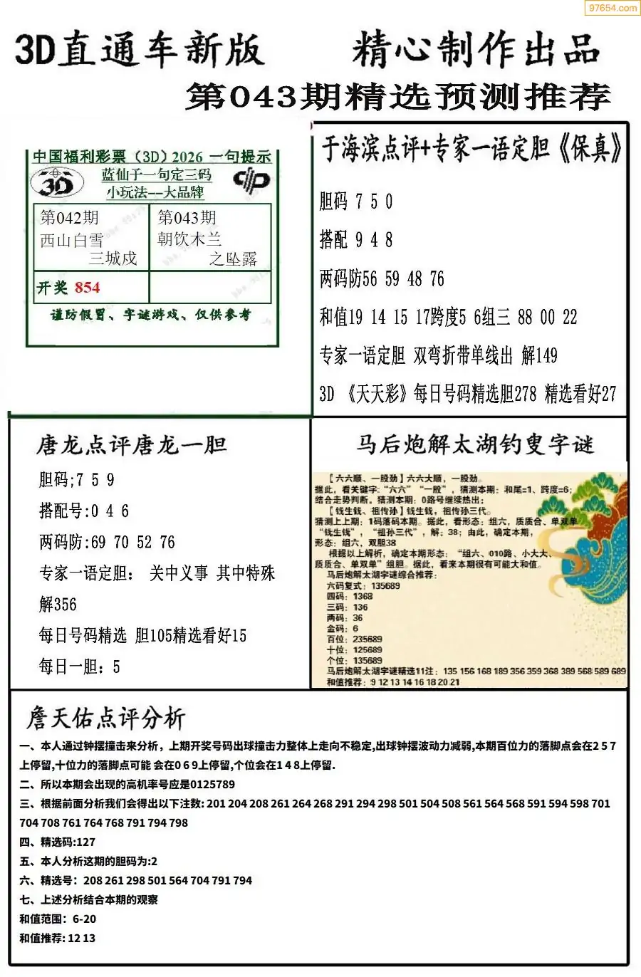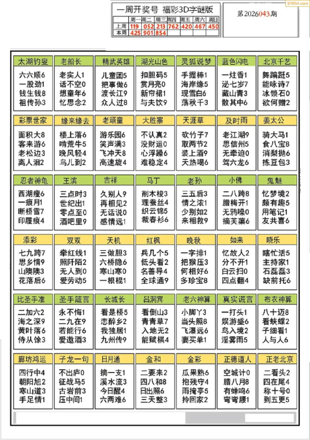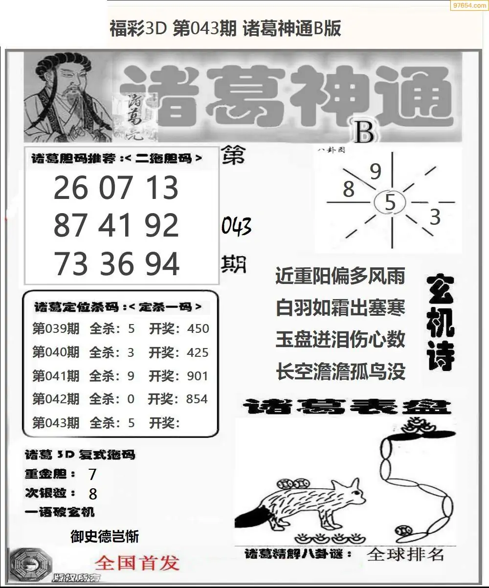 (2)26年043期本期3d图迷汇总_福彩3D图谜总汇图