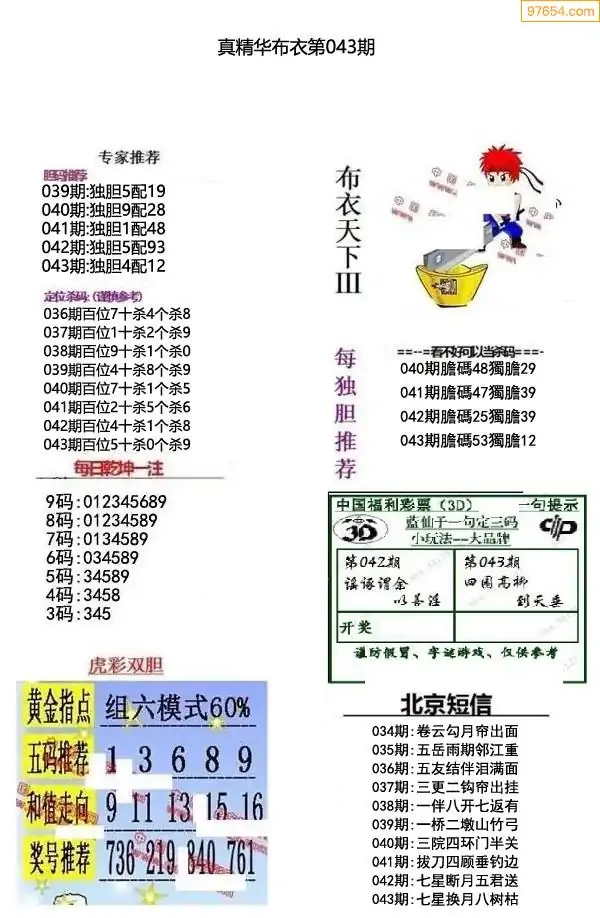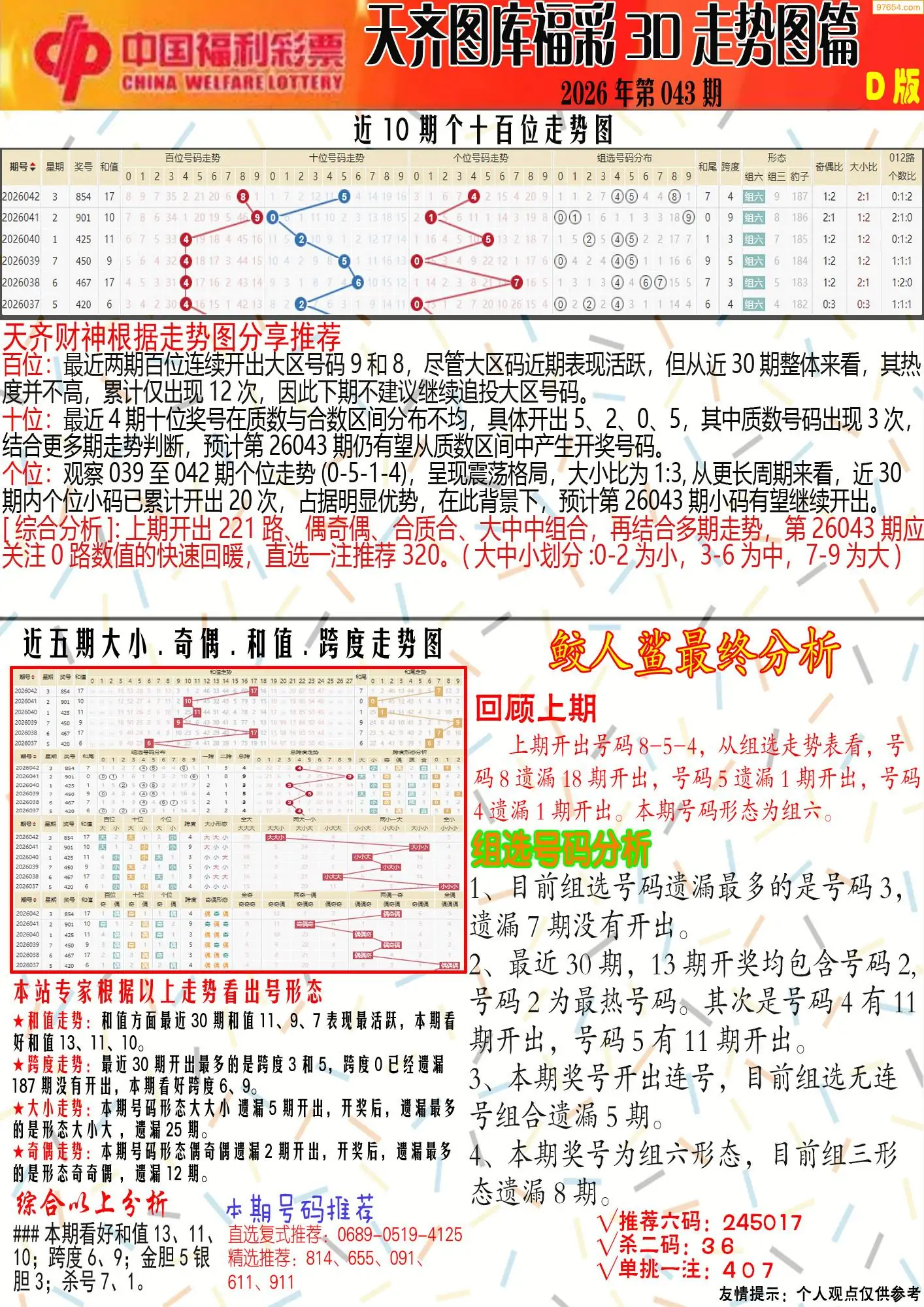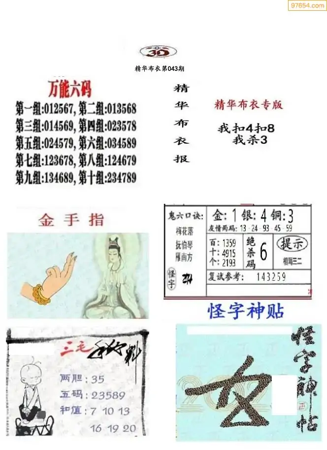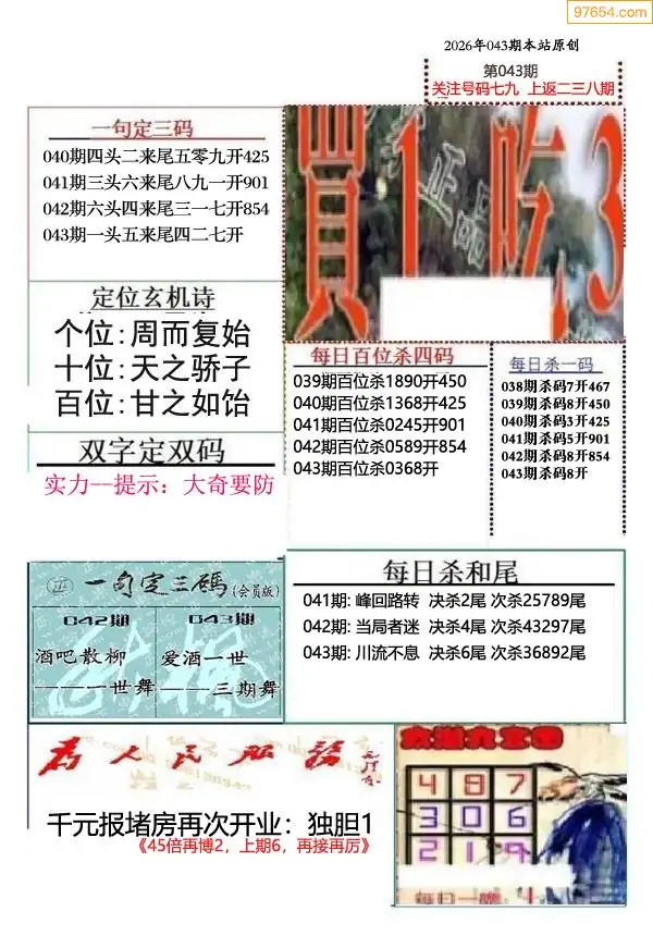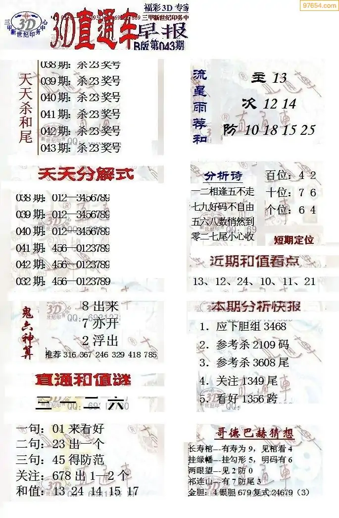 (2)26年043期本期3d图迷汇总_福彩3D图谜总汇图