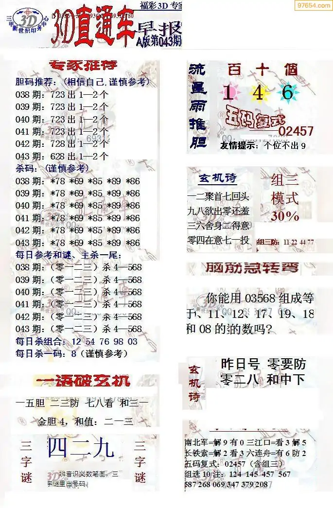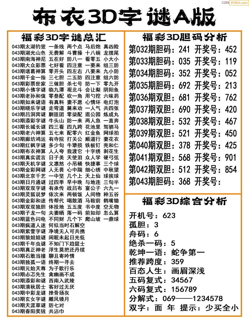 (3)2026043期3D预测总汇全图_福彩3d图谜字谜总汇