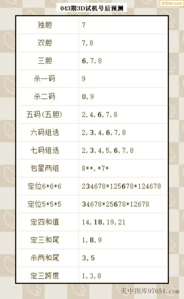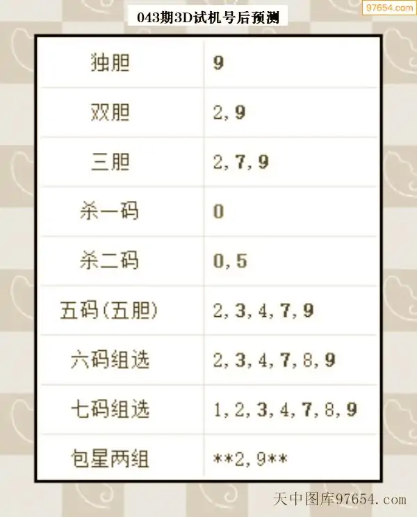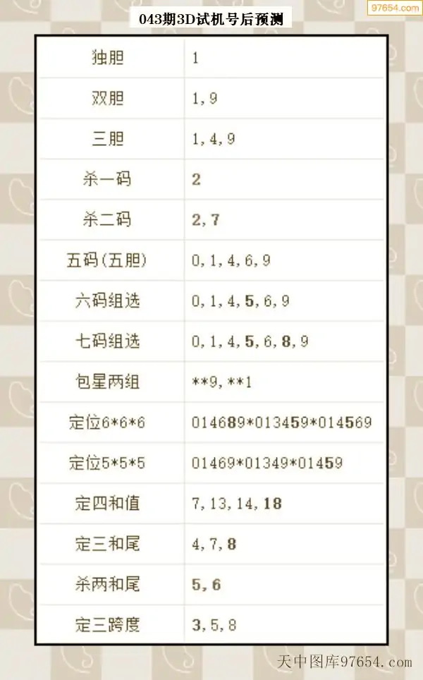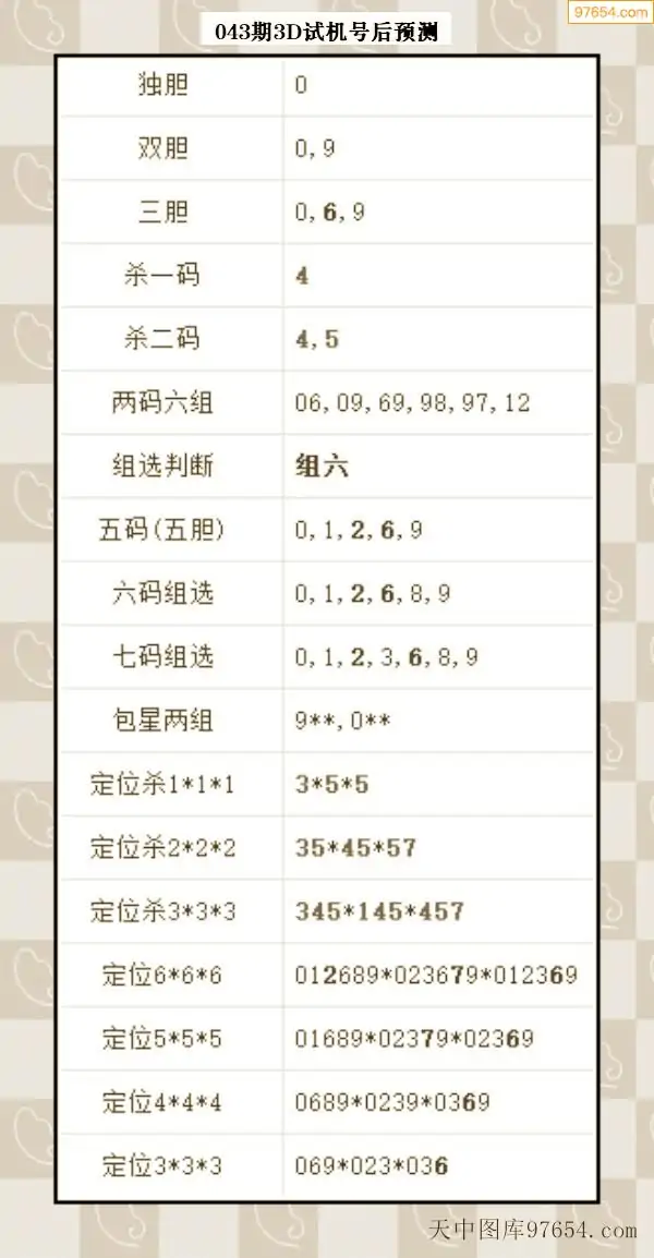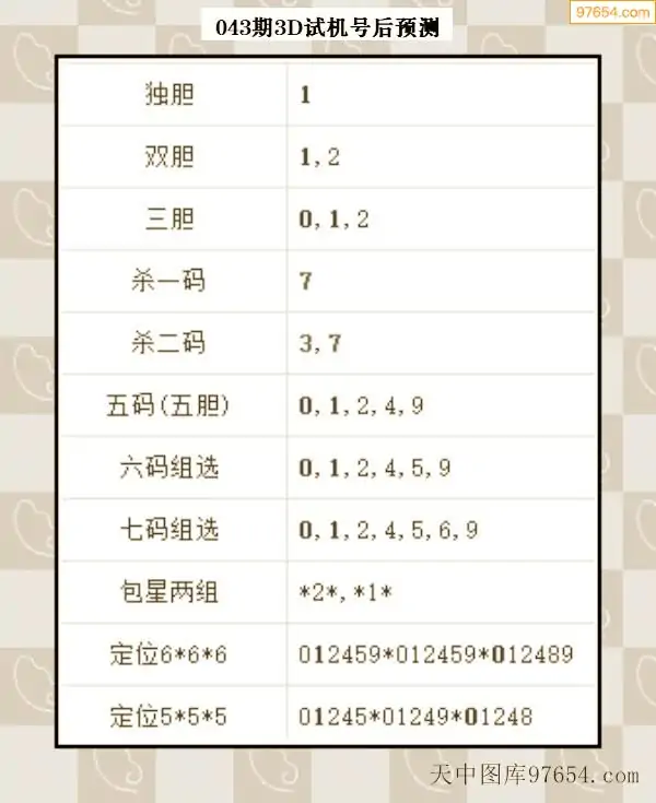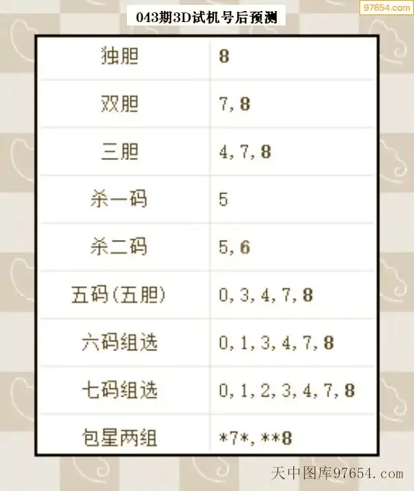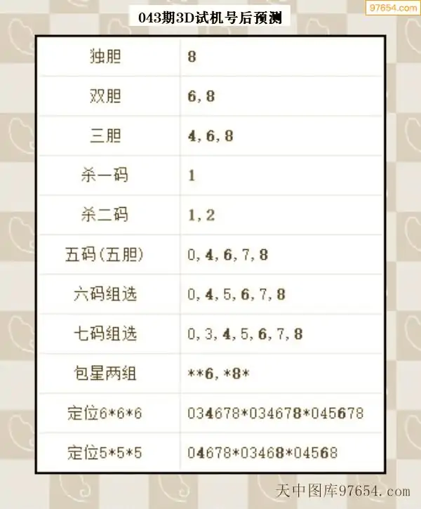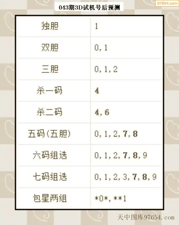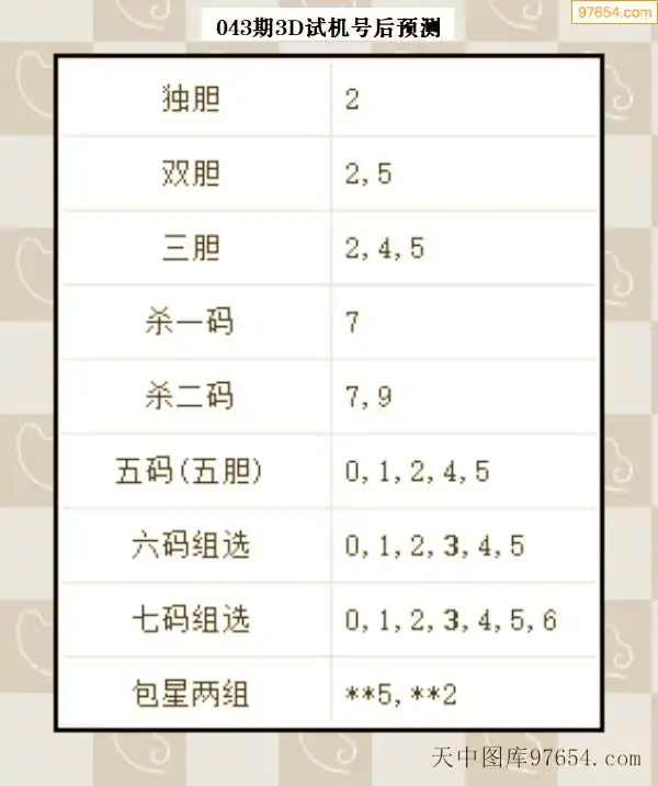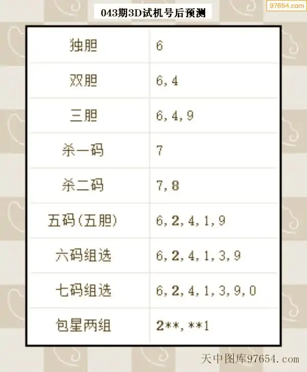 043期西南胆王预测本期3D开奖结果