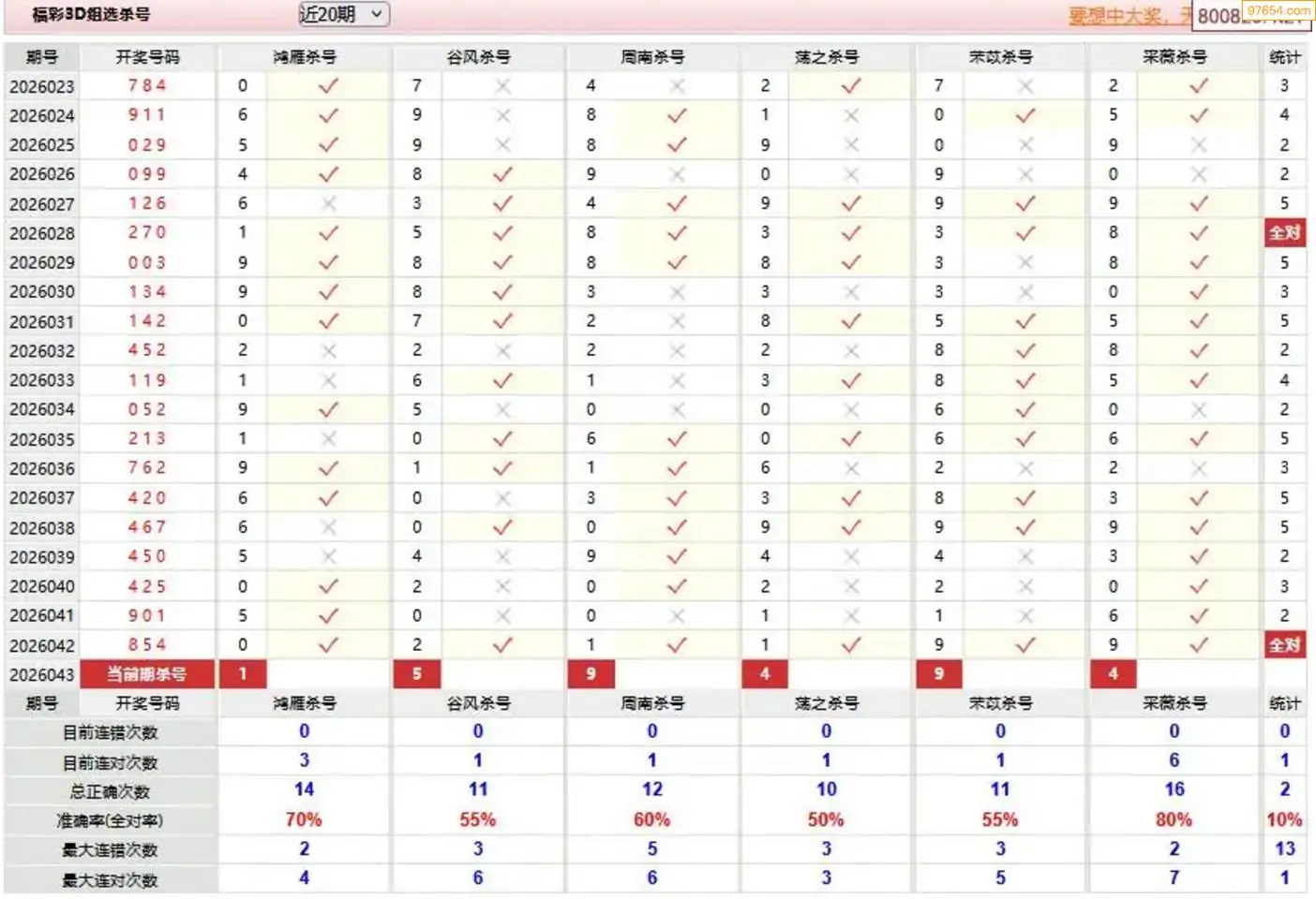 妙手043期今晚3d杀号预测 6连中