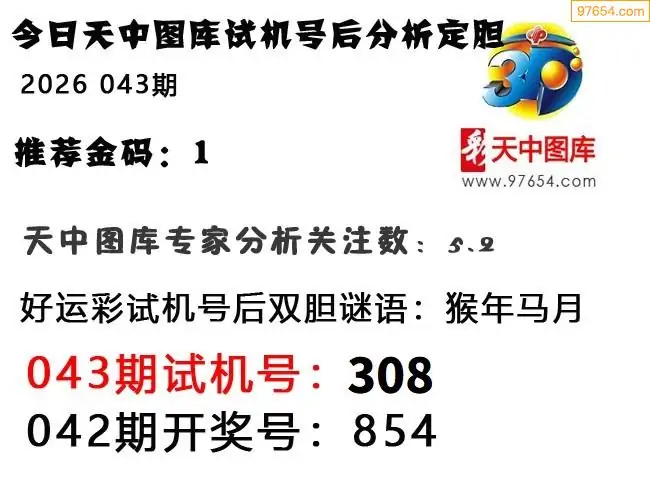 26年043期天中图库专家3D试机号后分析汇总