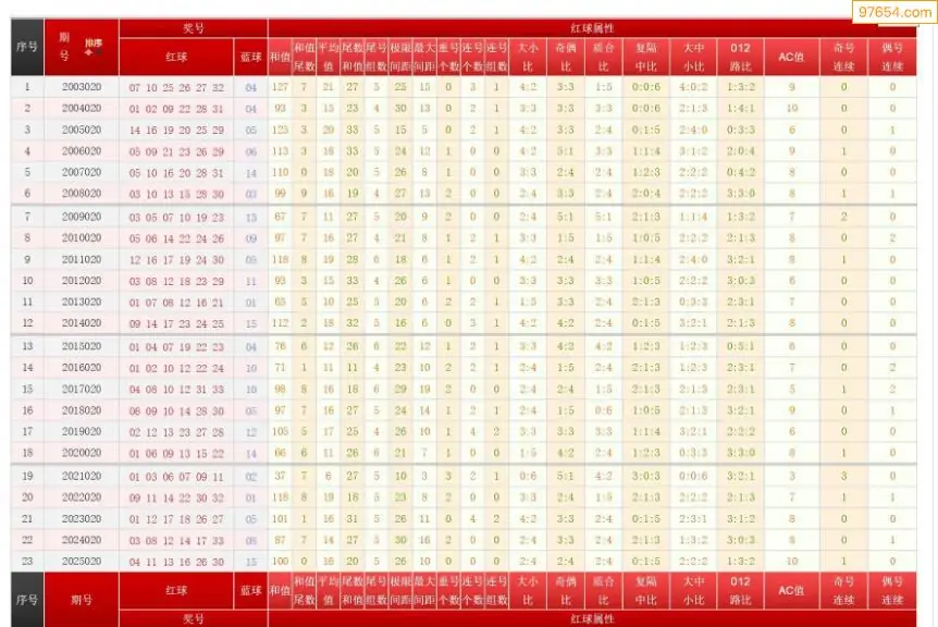 020期双色球历史同期图表+走势图