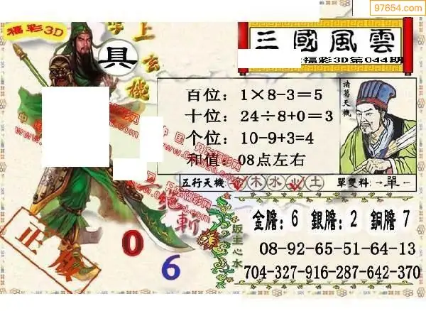 26年044期财神说彩3D综合图(原创)_3d财神到财神送胆