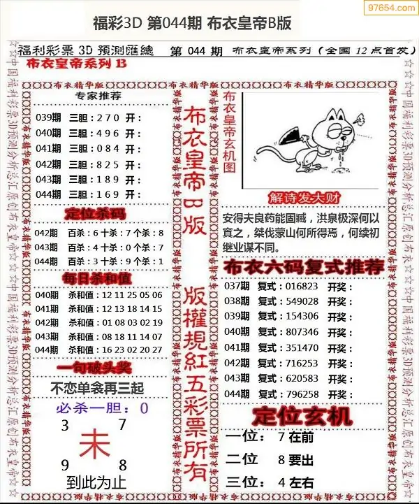 福彩3d044期新禧布衣定位杀号