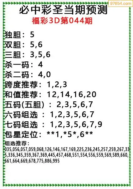 原创彩圣分析044期3D出号规律