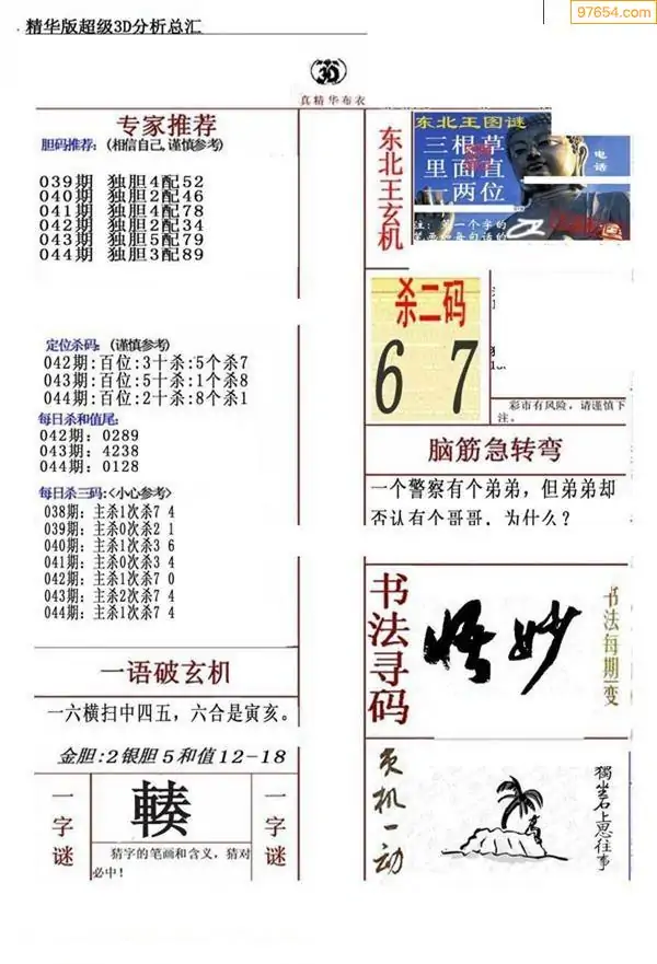 (3)2026044期3D预测总汇全图_福彩3d图谜字谜总汇