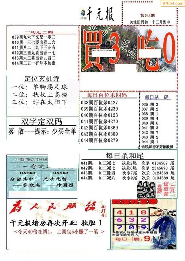 (8)26年043期今日3d各类彩报汇总