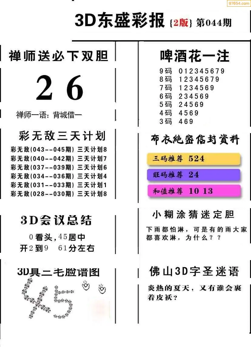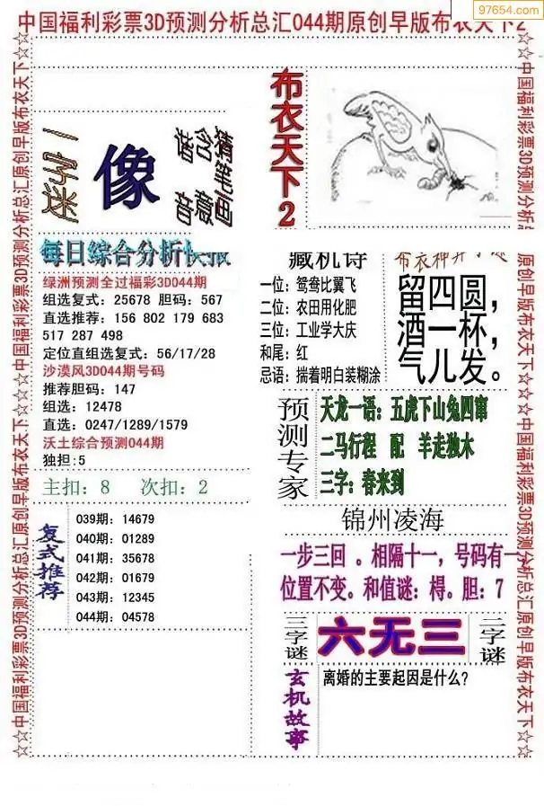 (2)26年044期本期3d图迷汇总_福彩3D图谜总汇图