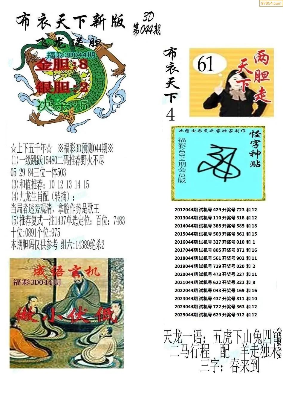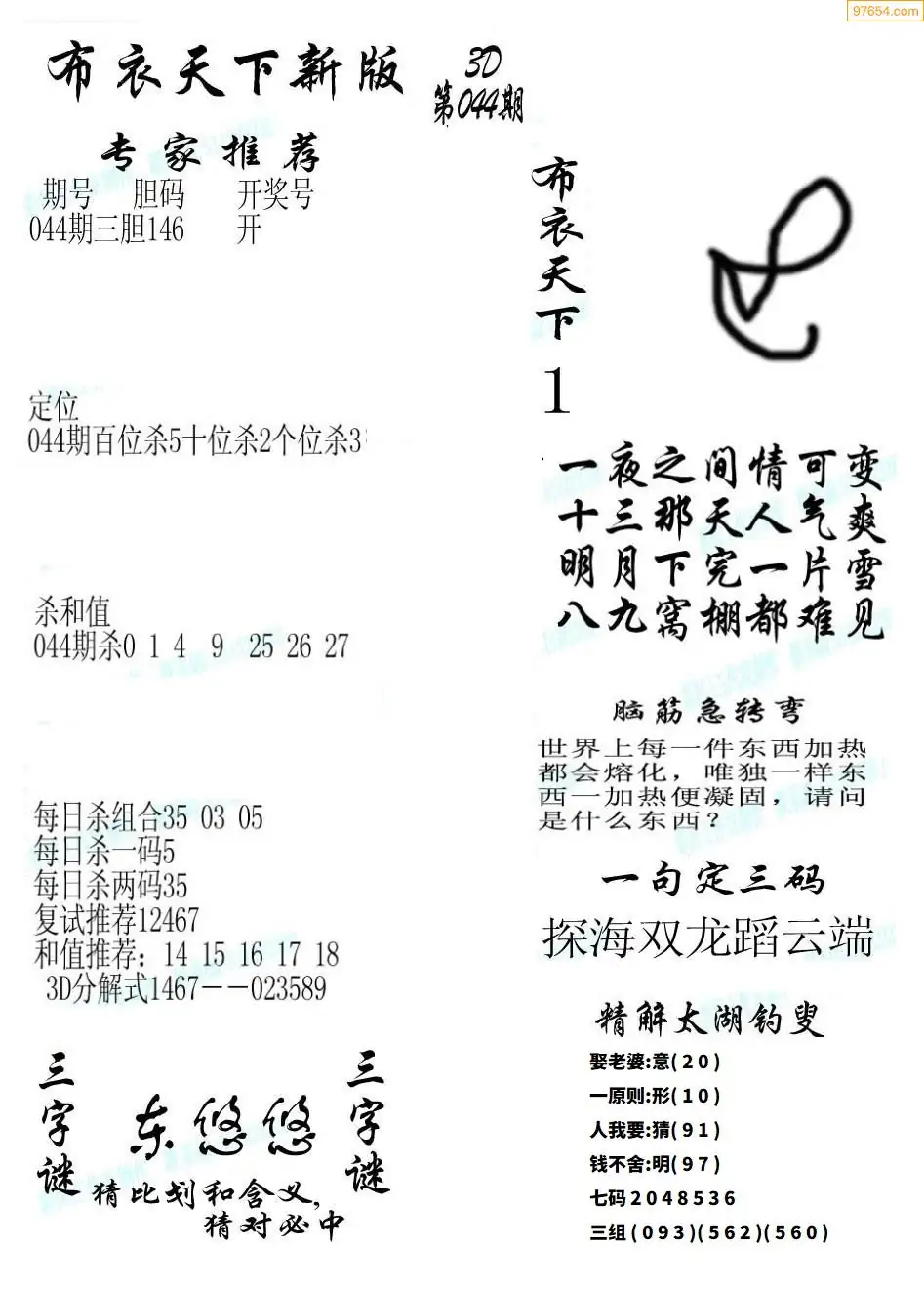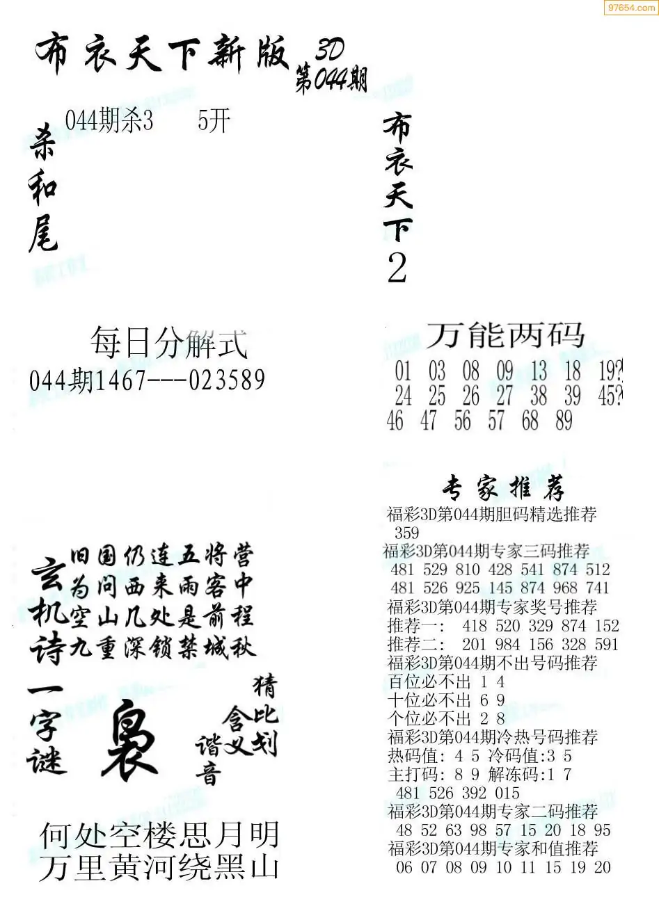福彩044期3d真精华布衣+布衣早报(转载)