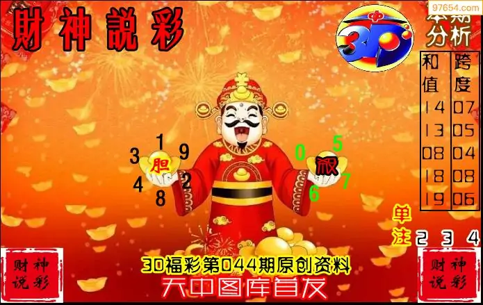 26年044期财神说彩3D综合图(原创)_3d财神到财神送胆