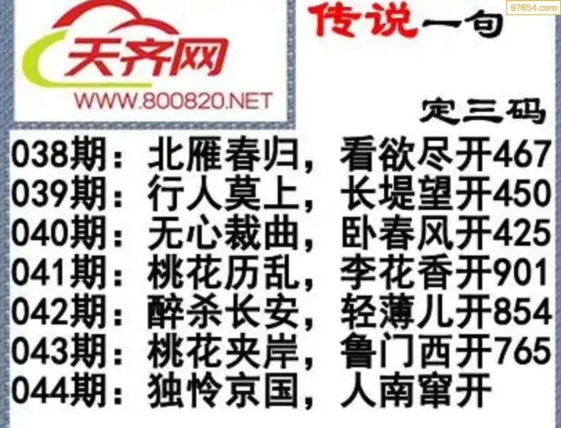 福彩3d26年044期字谜传说一句定三码