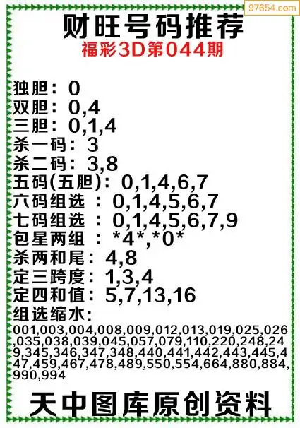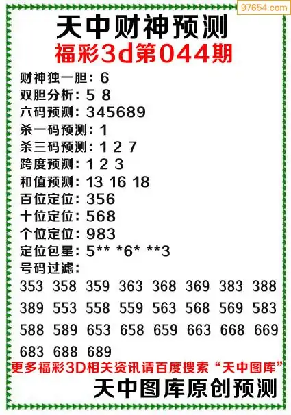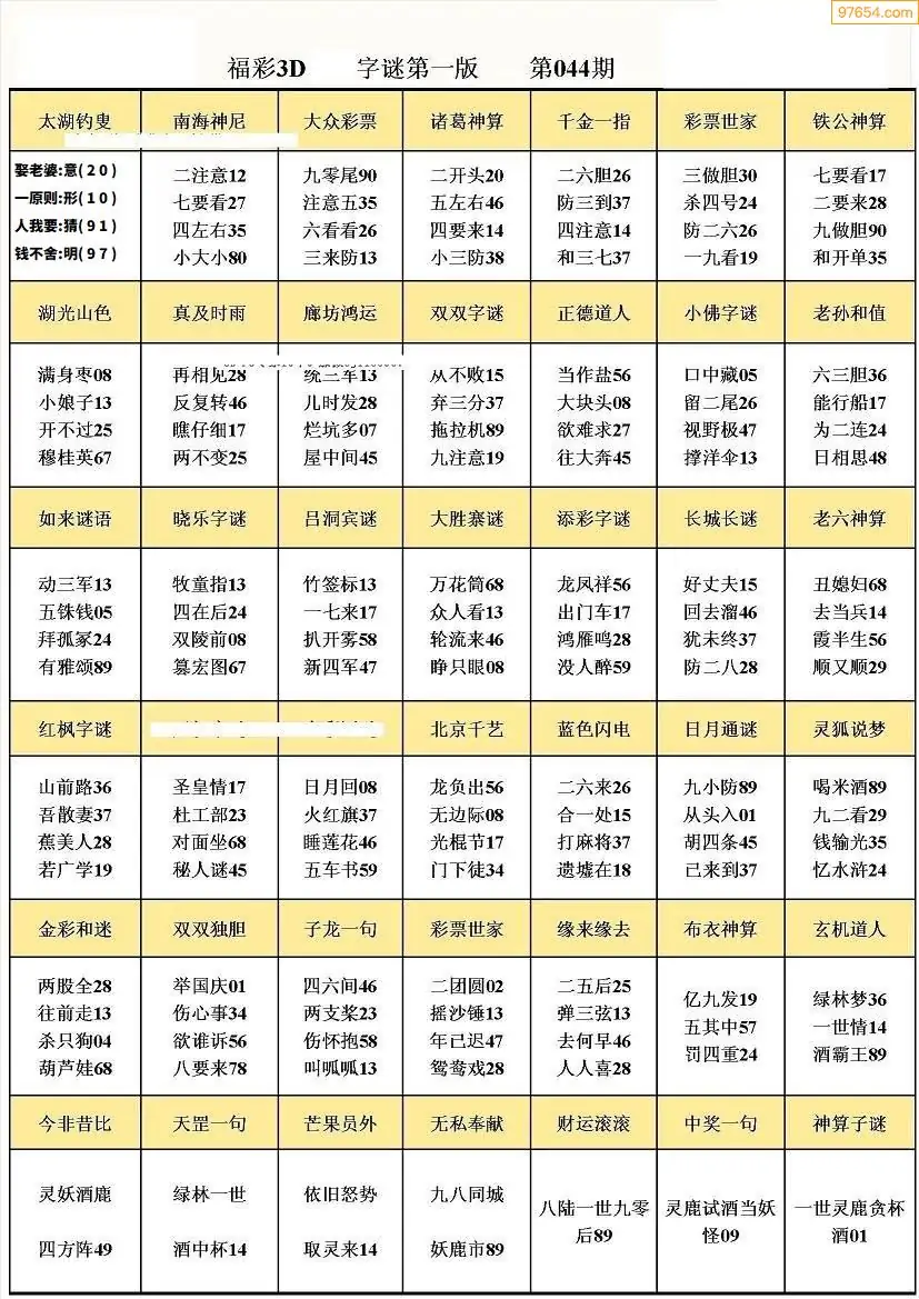 (3)2026044期3D预测总汇全图_福彩3d图谜字谜总汇