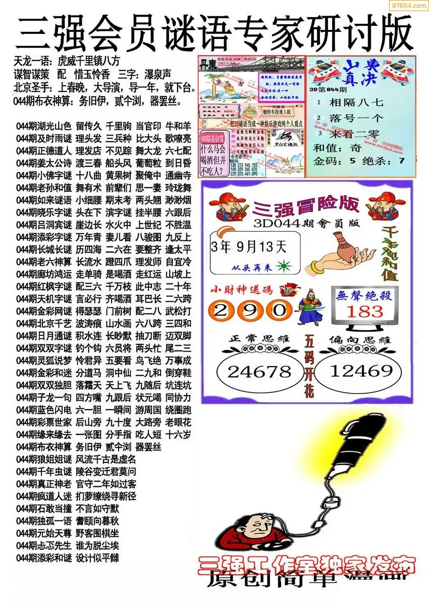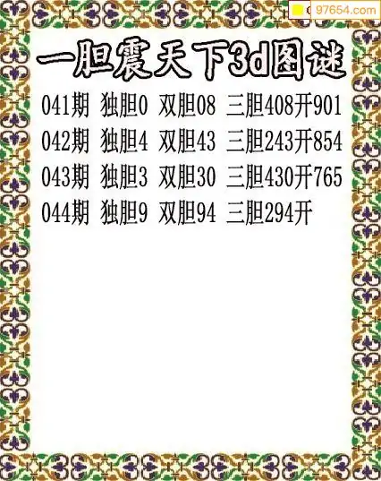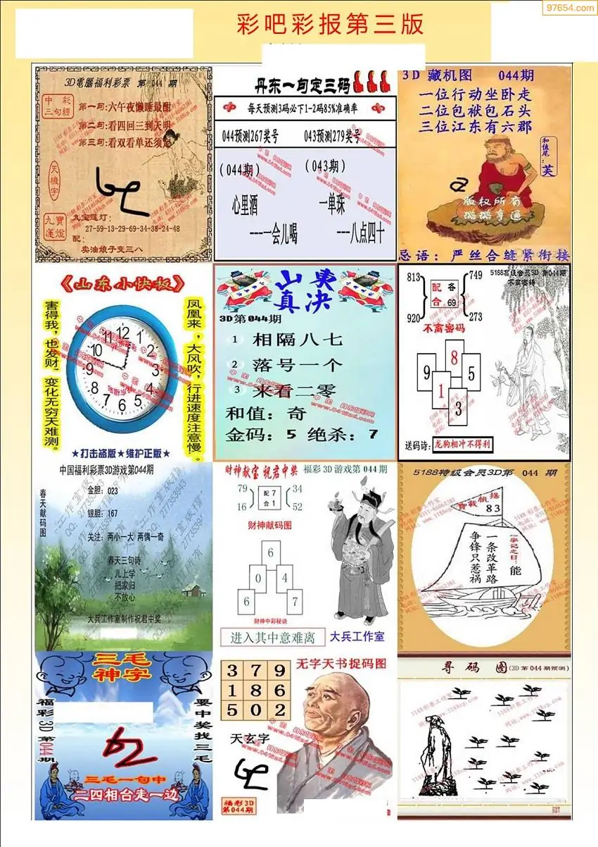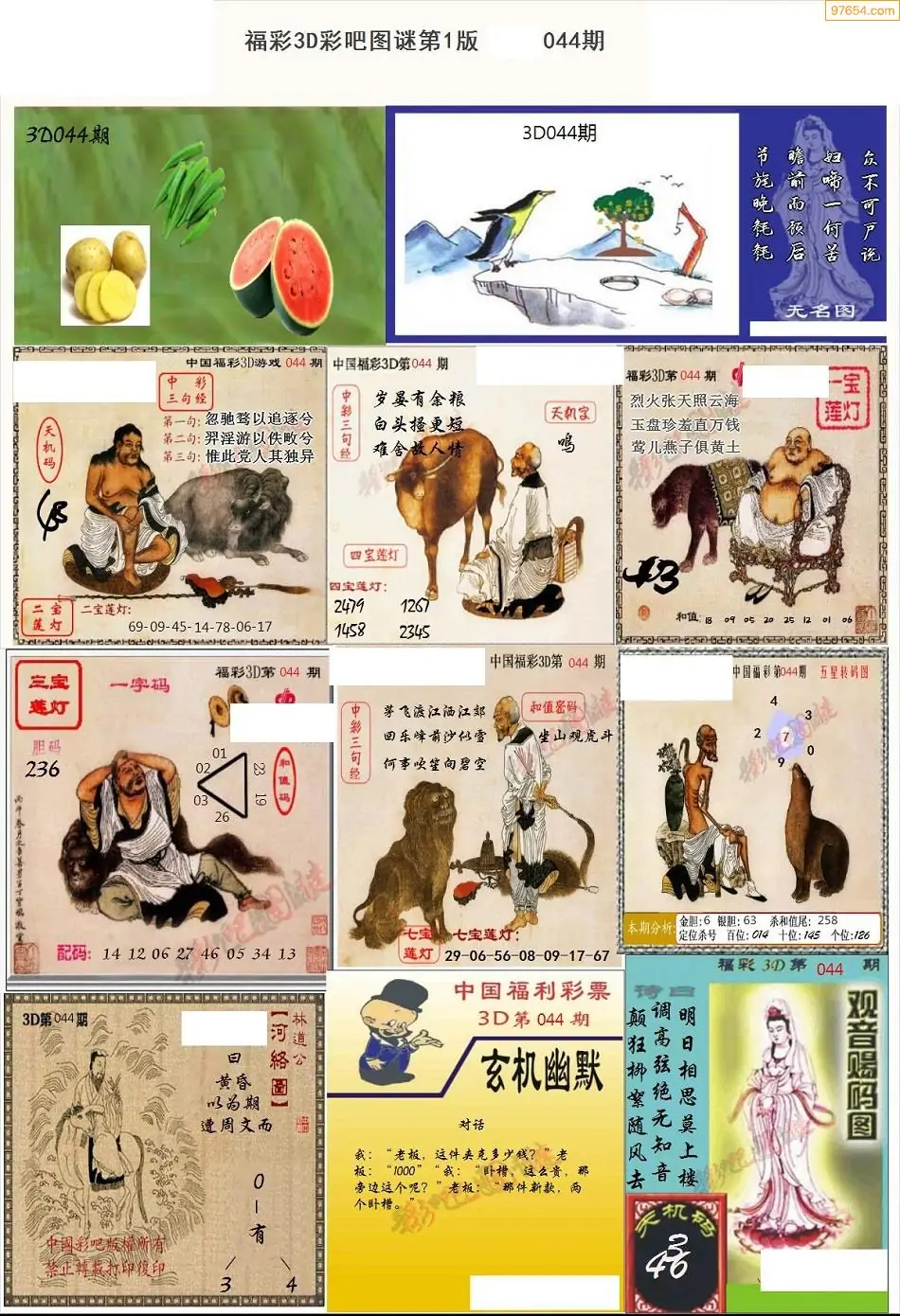 (3)2026044期3D预测总汇全图_福彩3d图谜字谜总汇