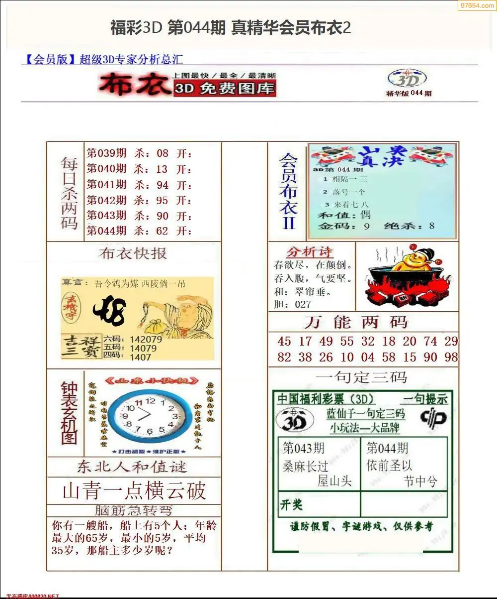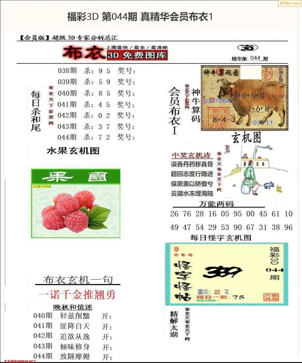 (2)26年044期本期3d图迷汇总_福彩3D图谜总汇图