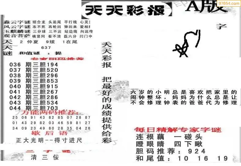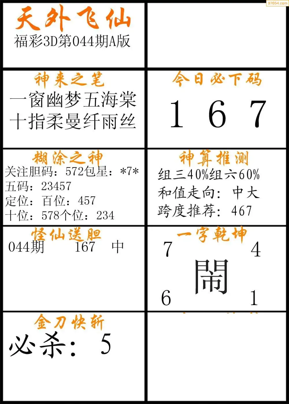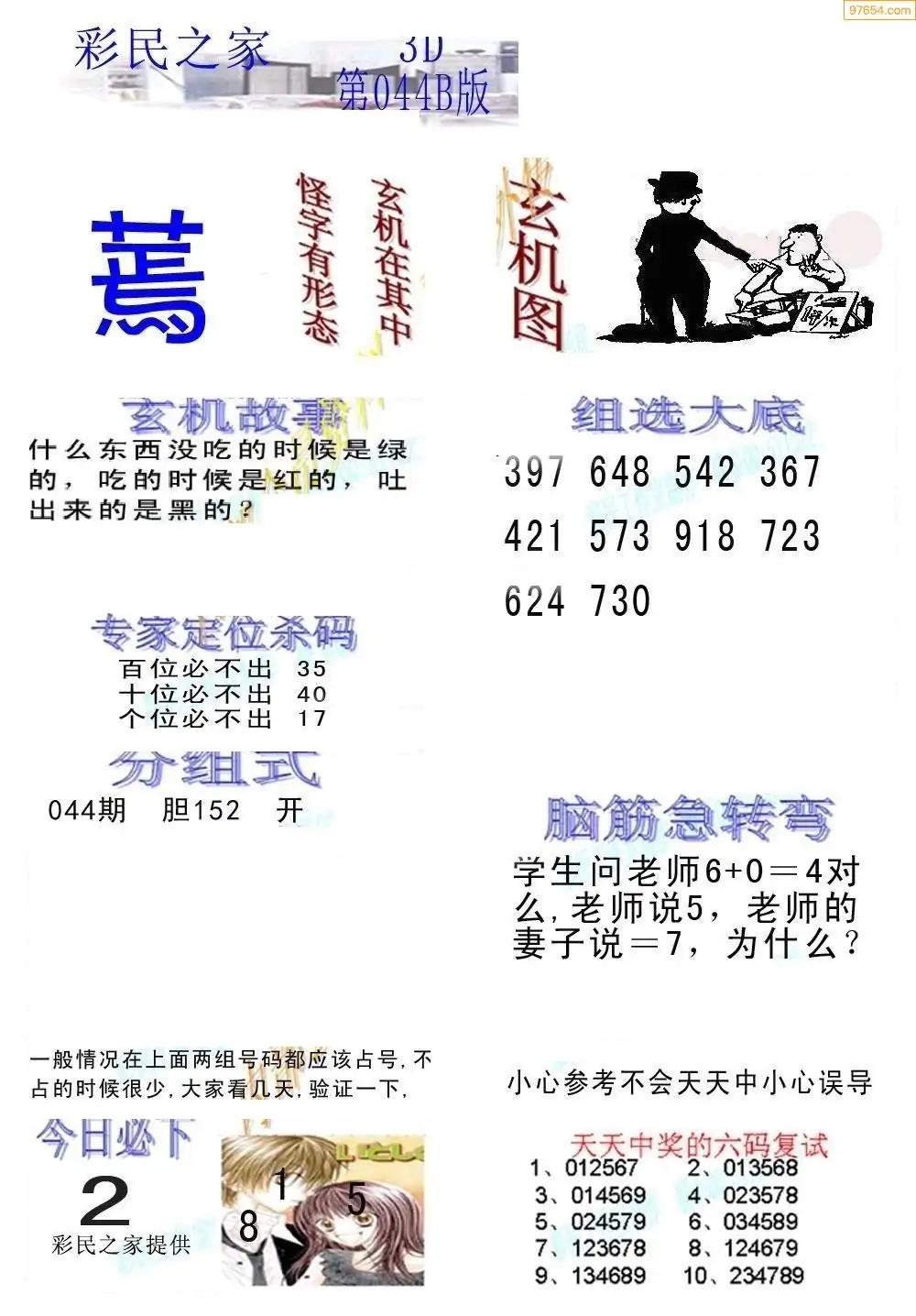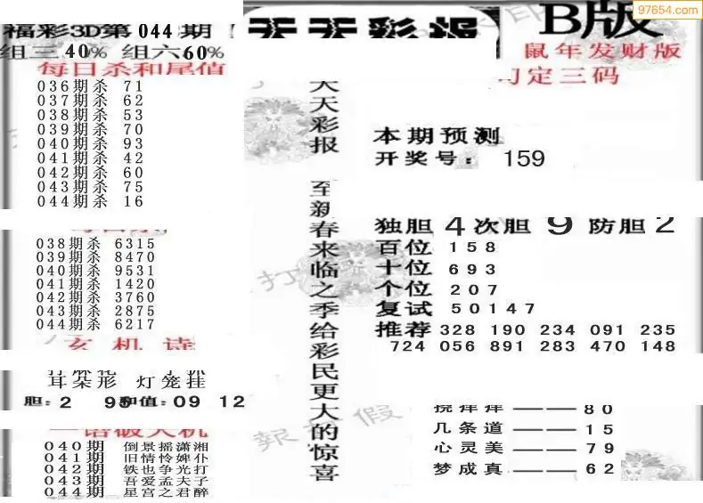 (8)26年044期今日3d各类彩报汇总