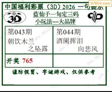 (5)26年043期福彩字谜图谜总汇