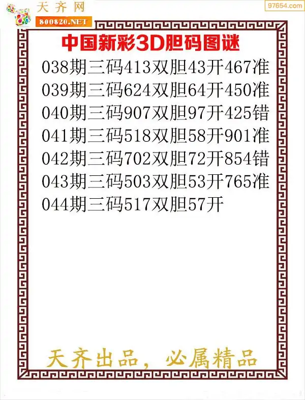 天齐网3d26年044期胆码图 胆:52