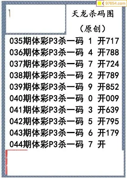 26年044期天龙体彩P3杀码图谜