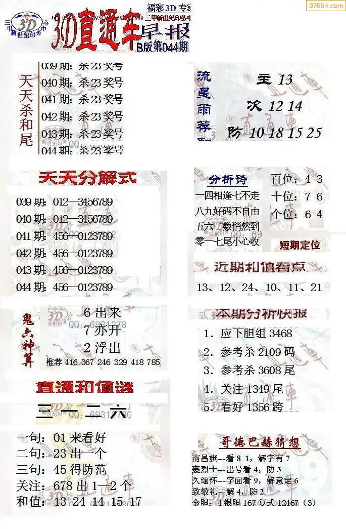 26年044期3D各板块资料整合汇总