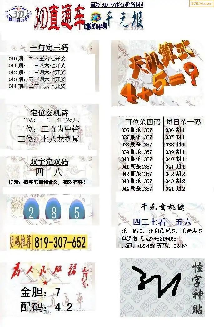 3D试机号金码