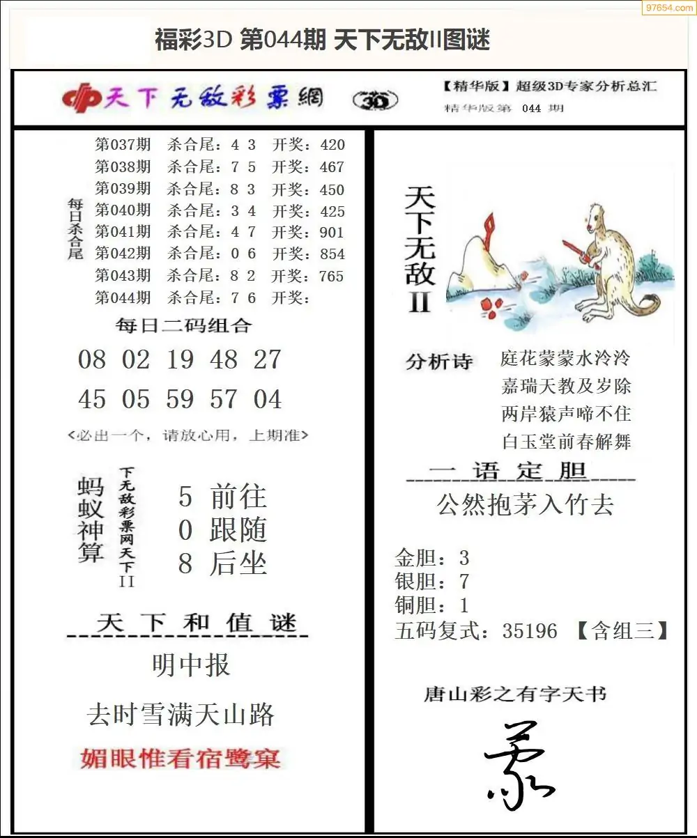 26年044期3d选号彩报图谜画谜