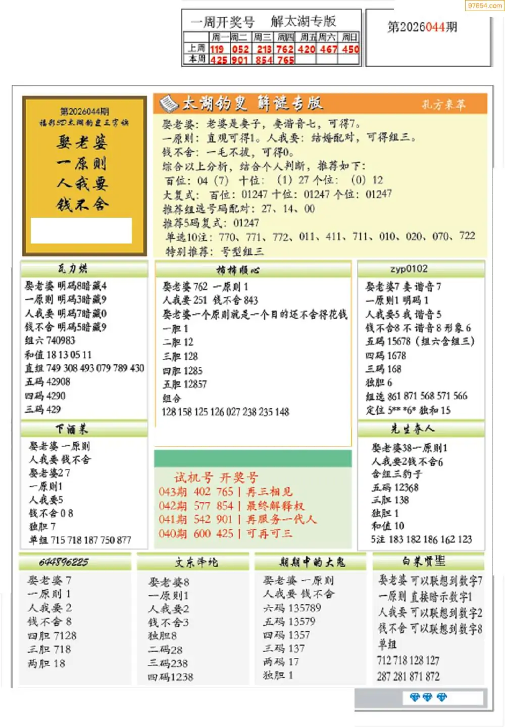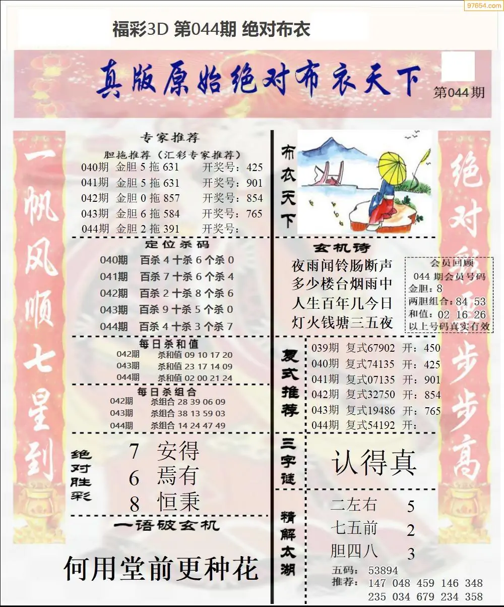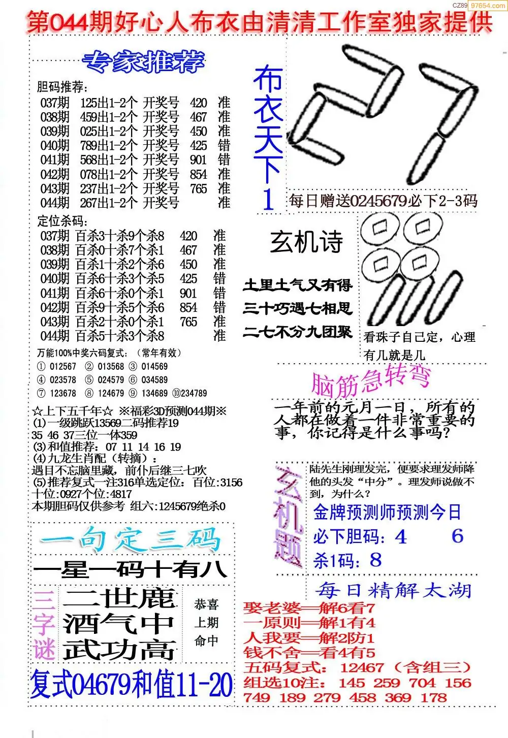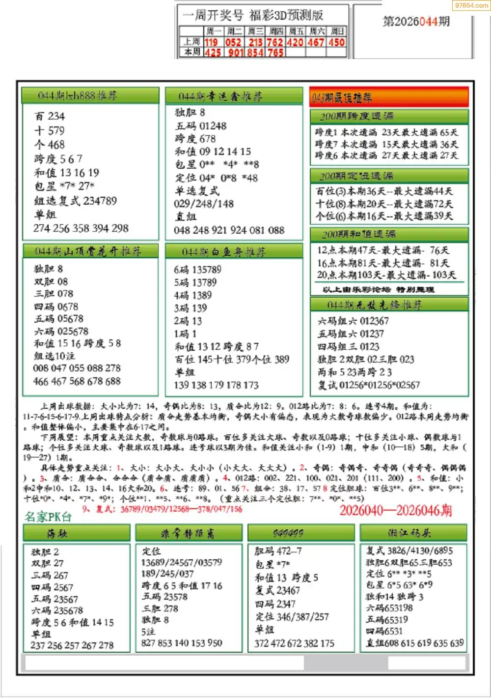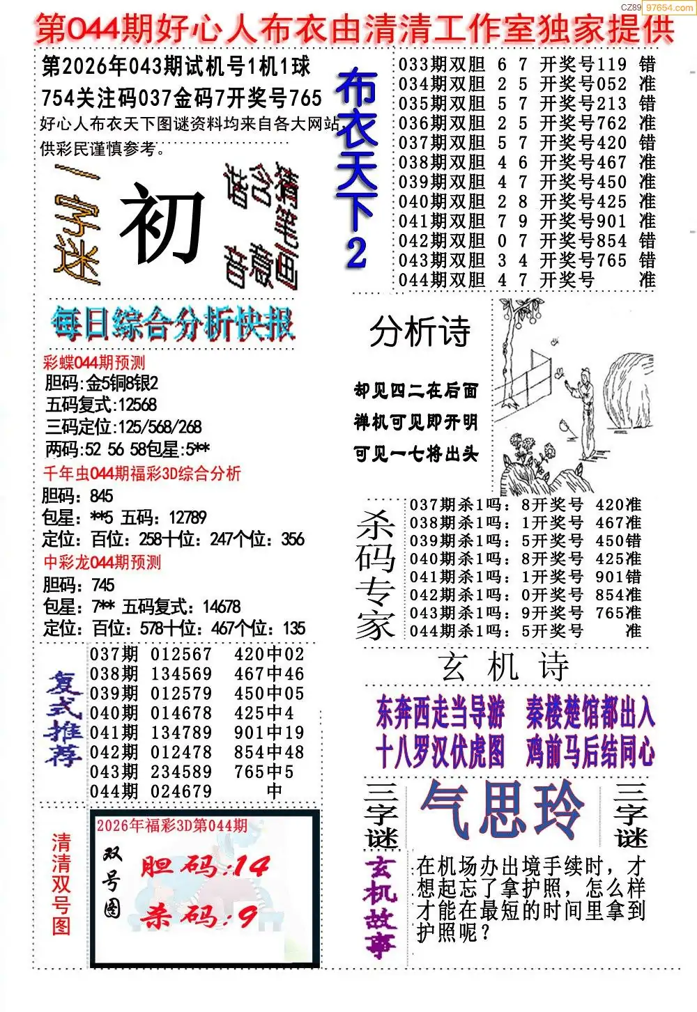 (2)26年044期本期3d图迷汇总_福彩3D图谜总汇图