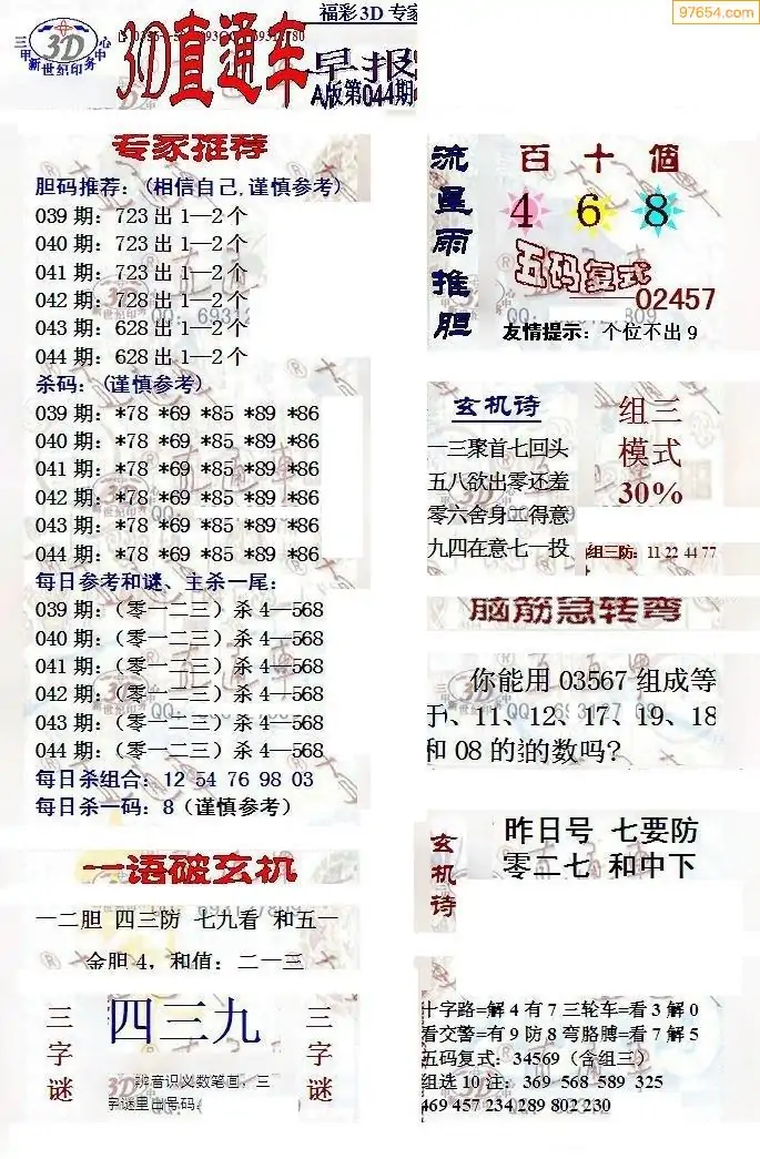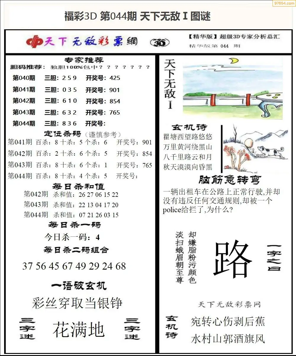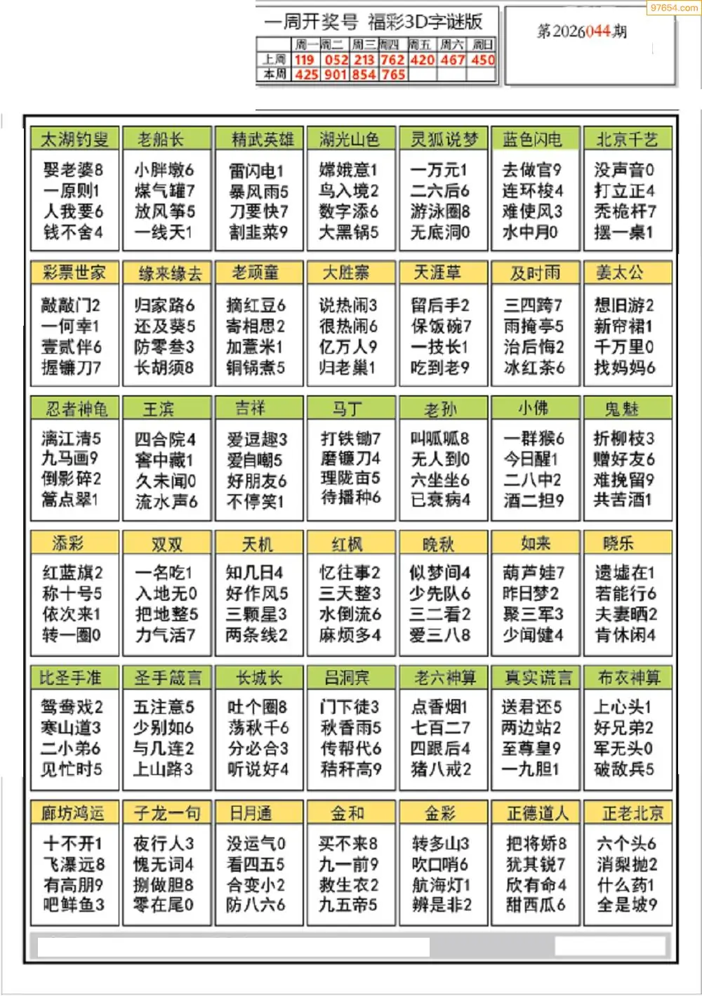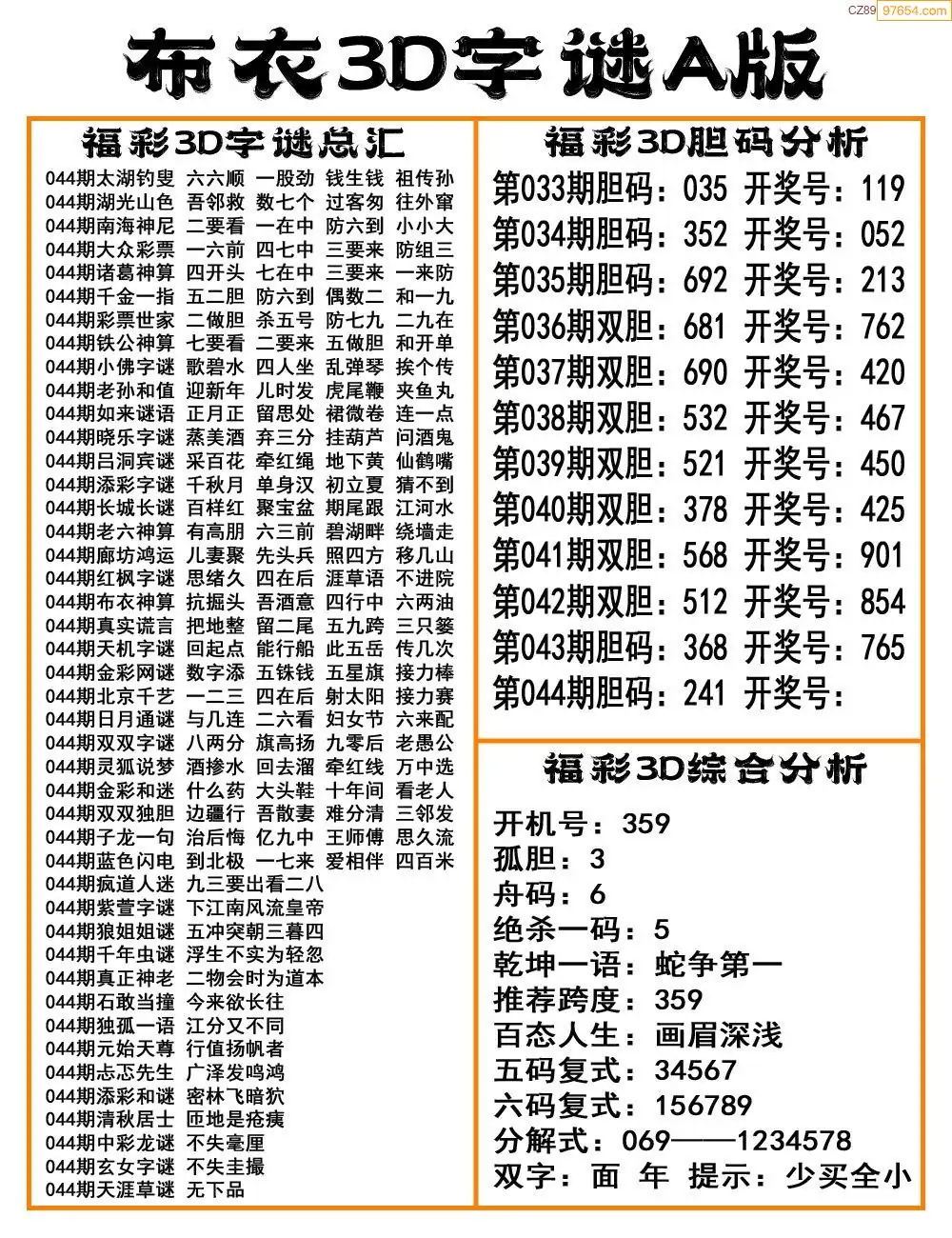 (3)2026044期3D预测总汇全图_福彩3d图谜字谜总汇
