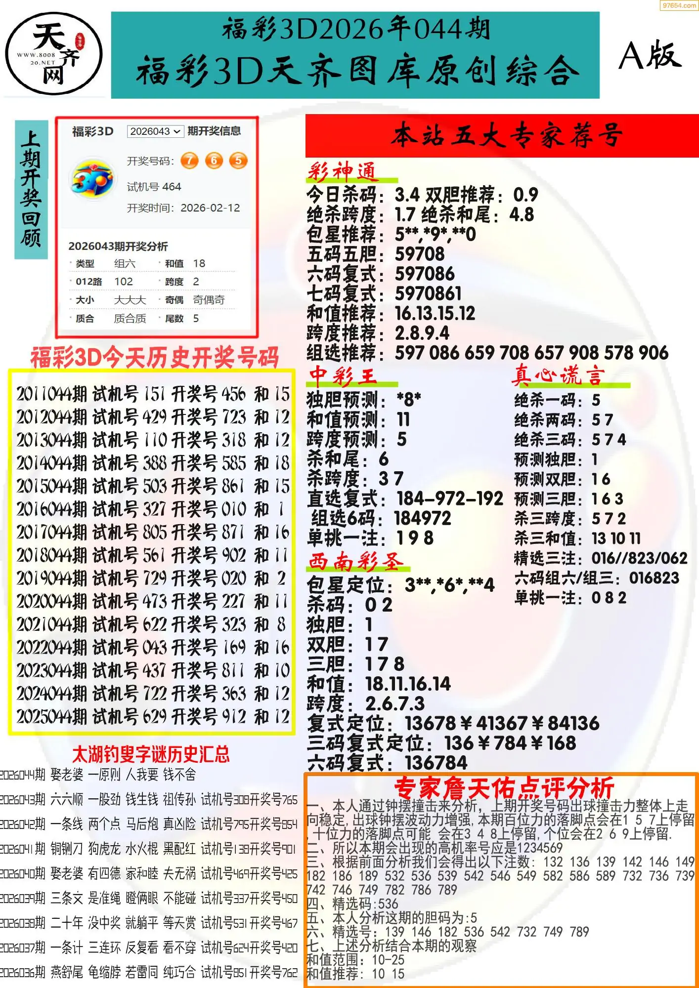 (2)26年043期本期3d图迷汇总_福彩3D图谜总汇图