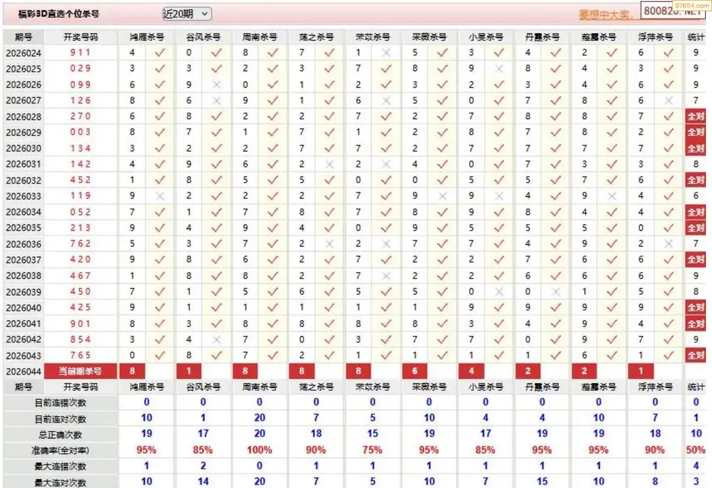 胡八一3d26年044期杀号一胆 5连中