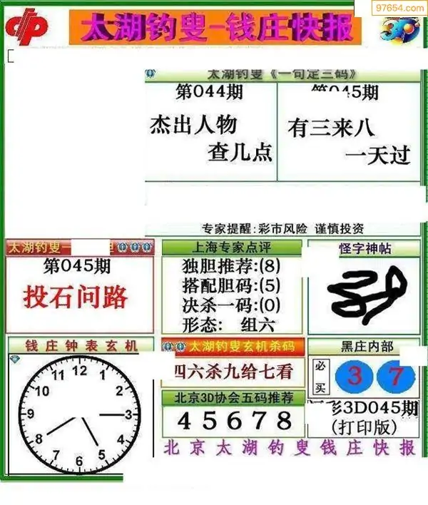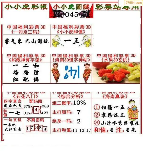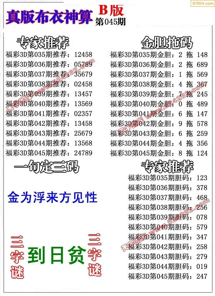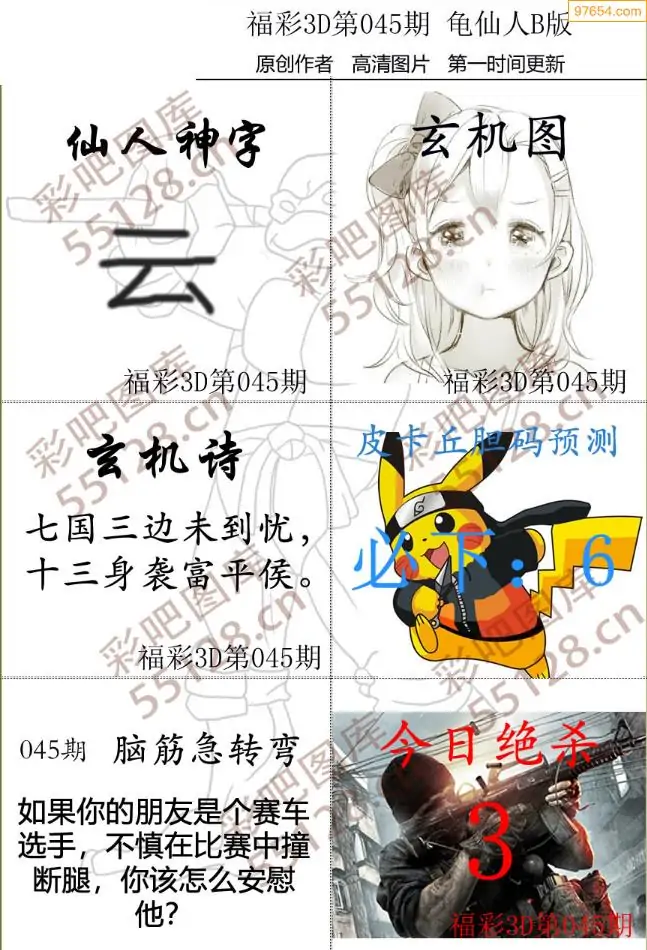 (3)2026045期3D预测总汇全图_福彩3d图谜字谜总汇