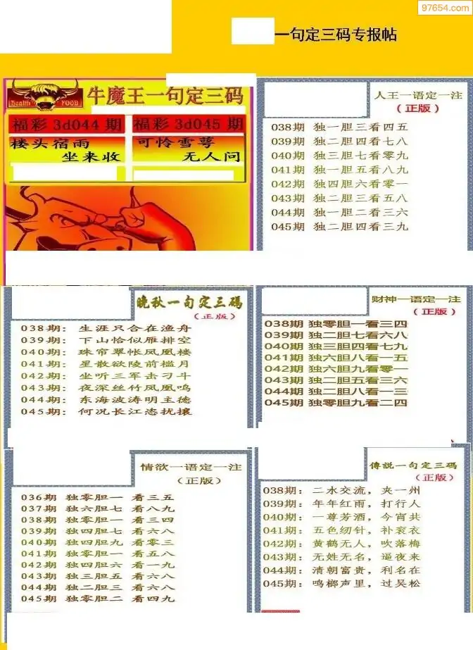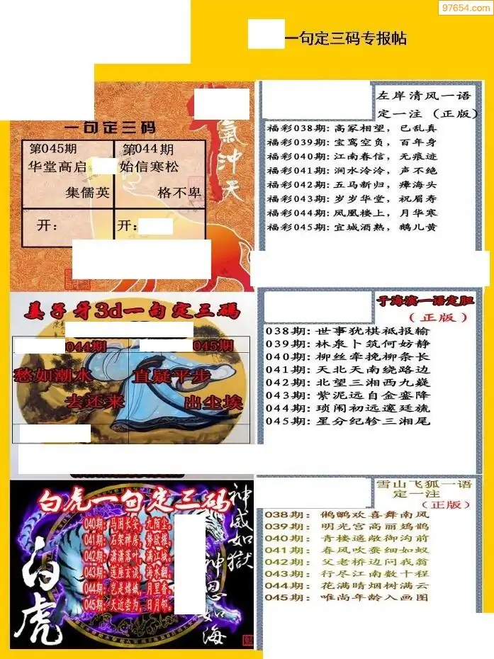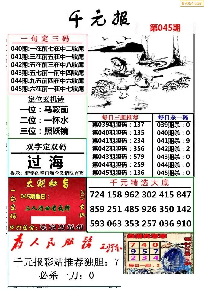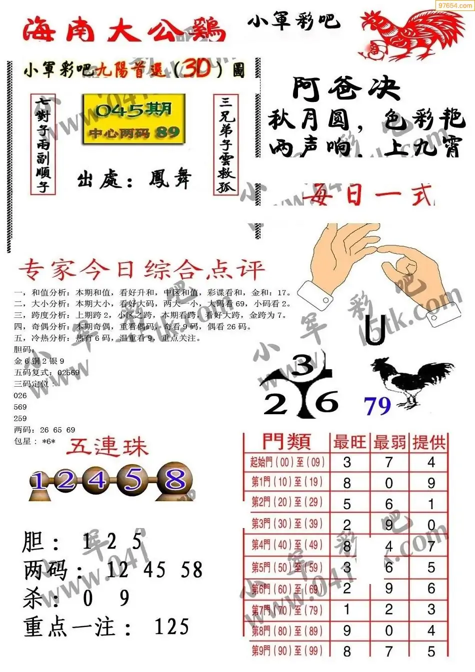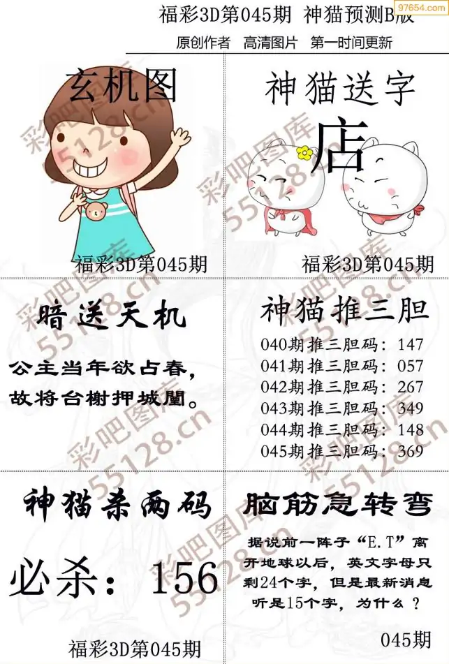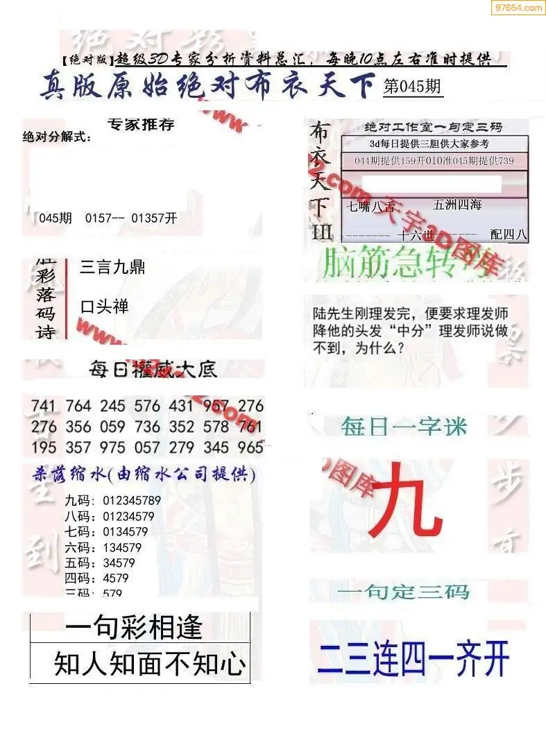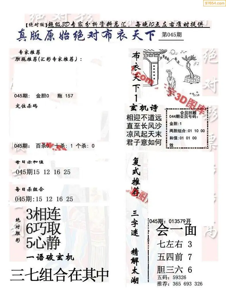 (2)26年045期本期3d图迷汇总_福彩3D图谜总汇图