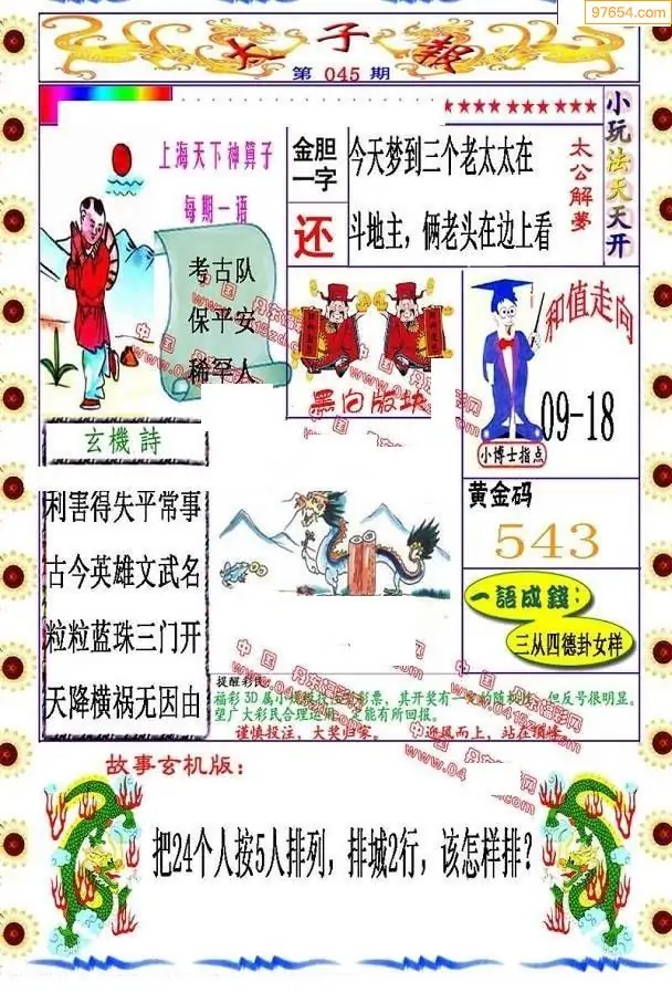 045期福彩太子报红五图库