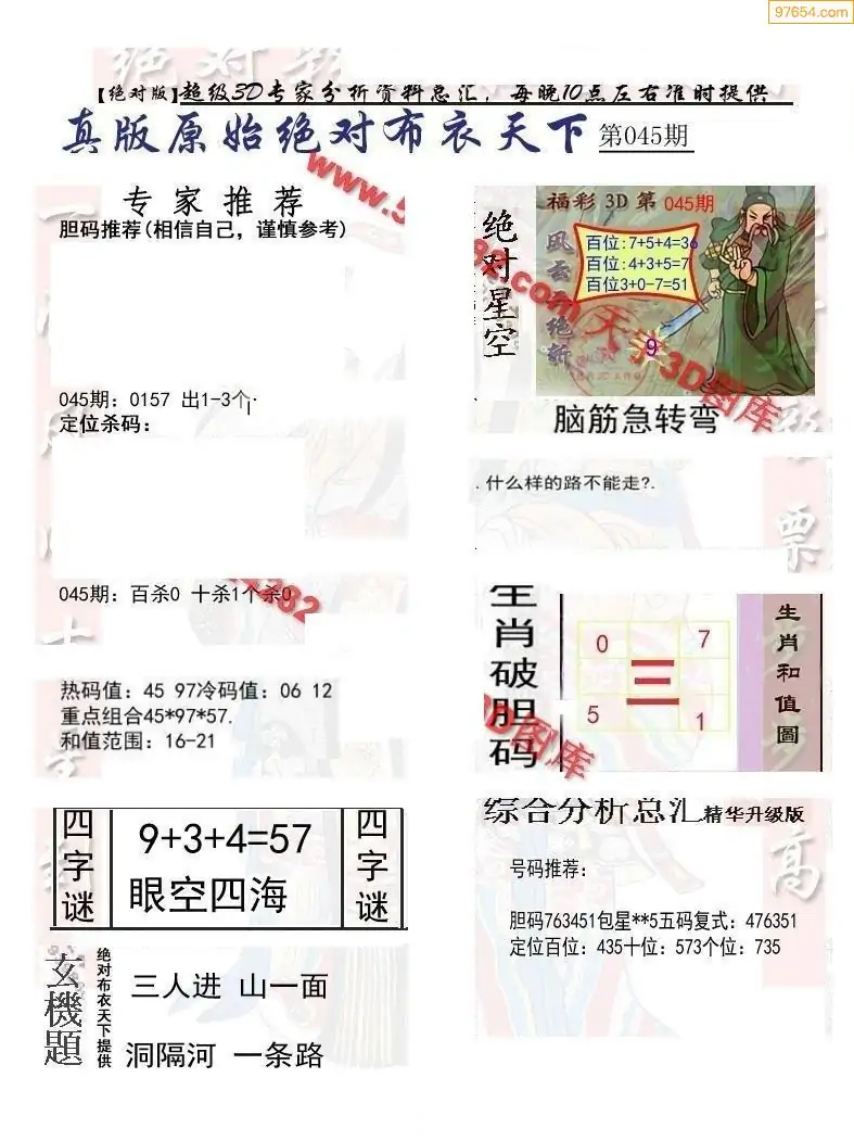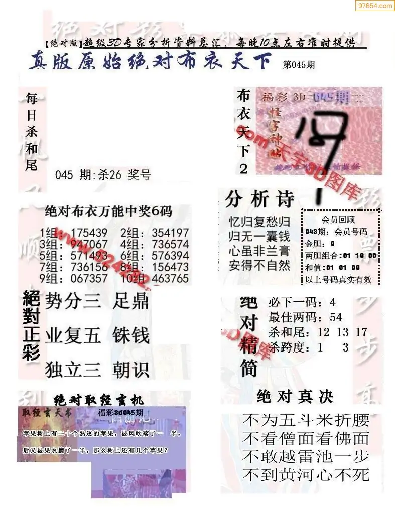 福彩045期3d真精华布衣+布衣早报(转载)