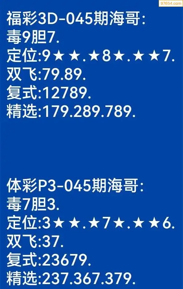 海哥福彩045期3d今日双胆