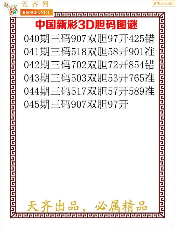 天齐网3d26年045期胆码图 胆:24