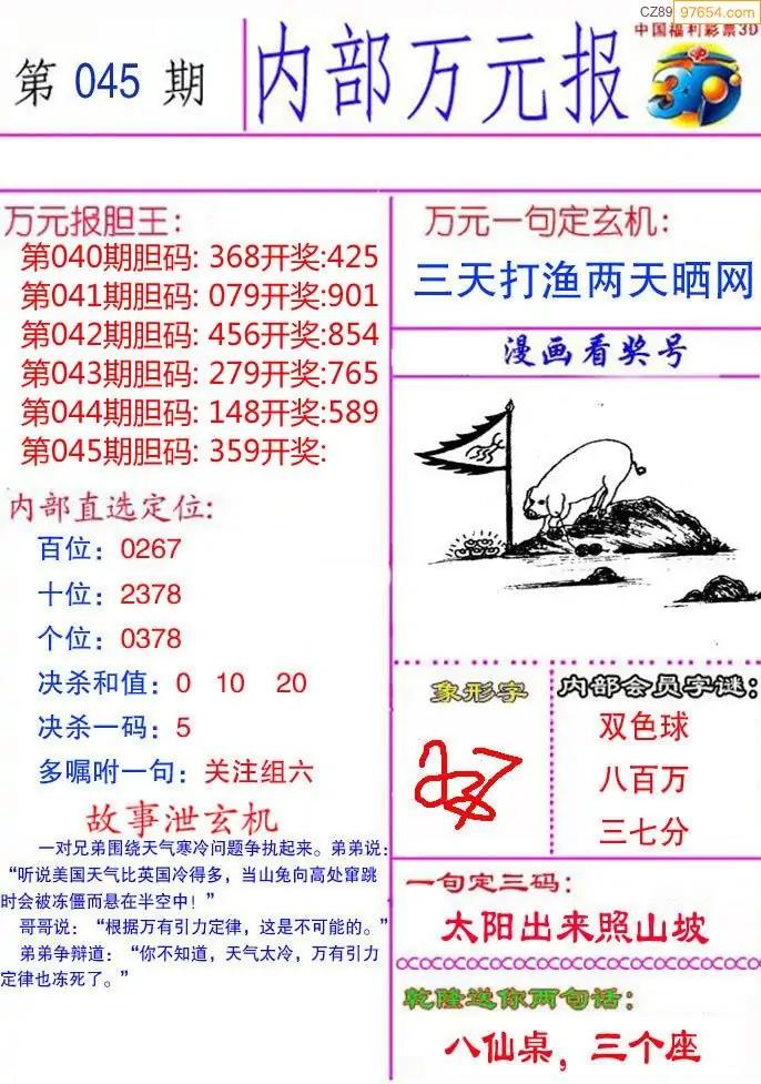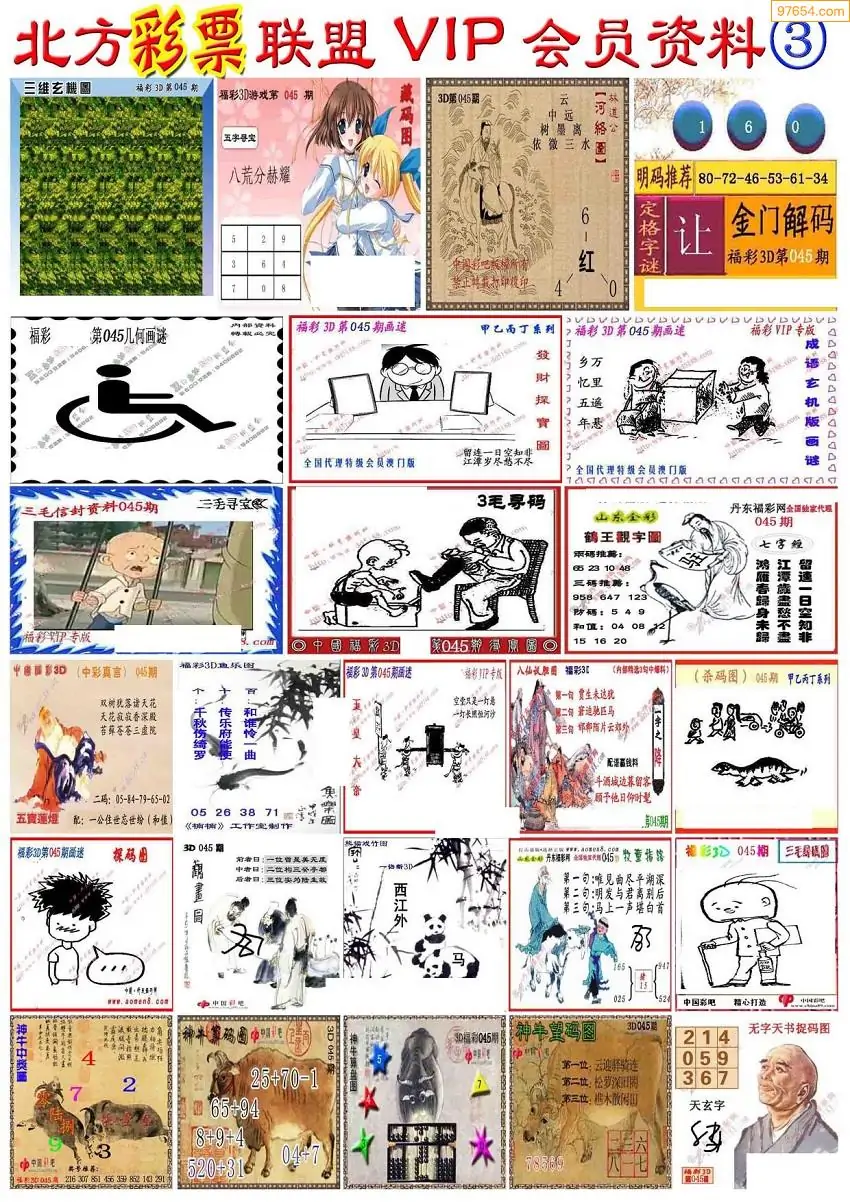 (3)2026045期3D预测总汇全图_福彩3d图谜字谜总汇