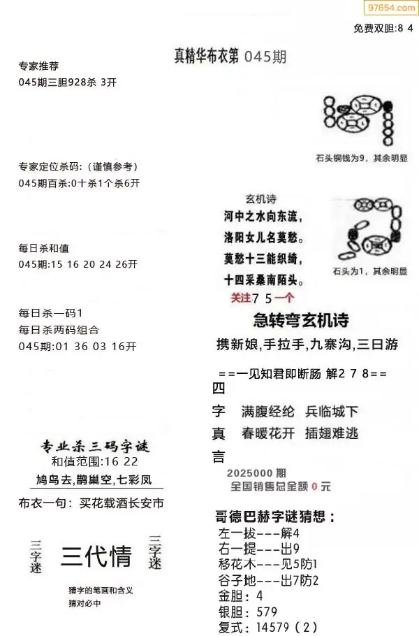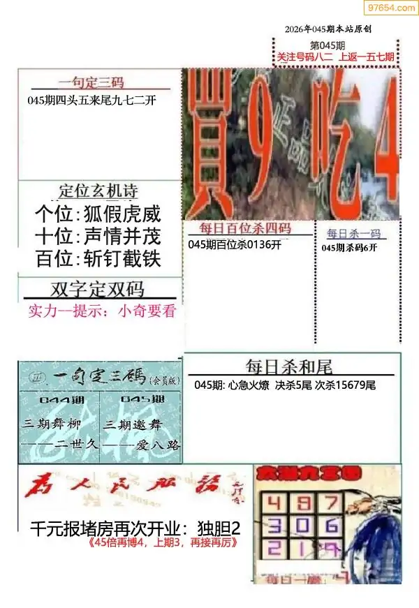 (9)26年045期当期全站杀号定胆图