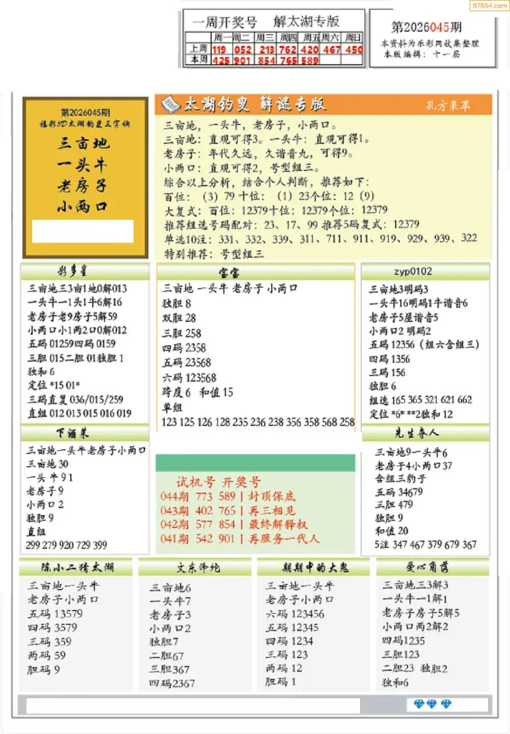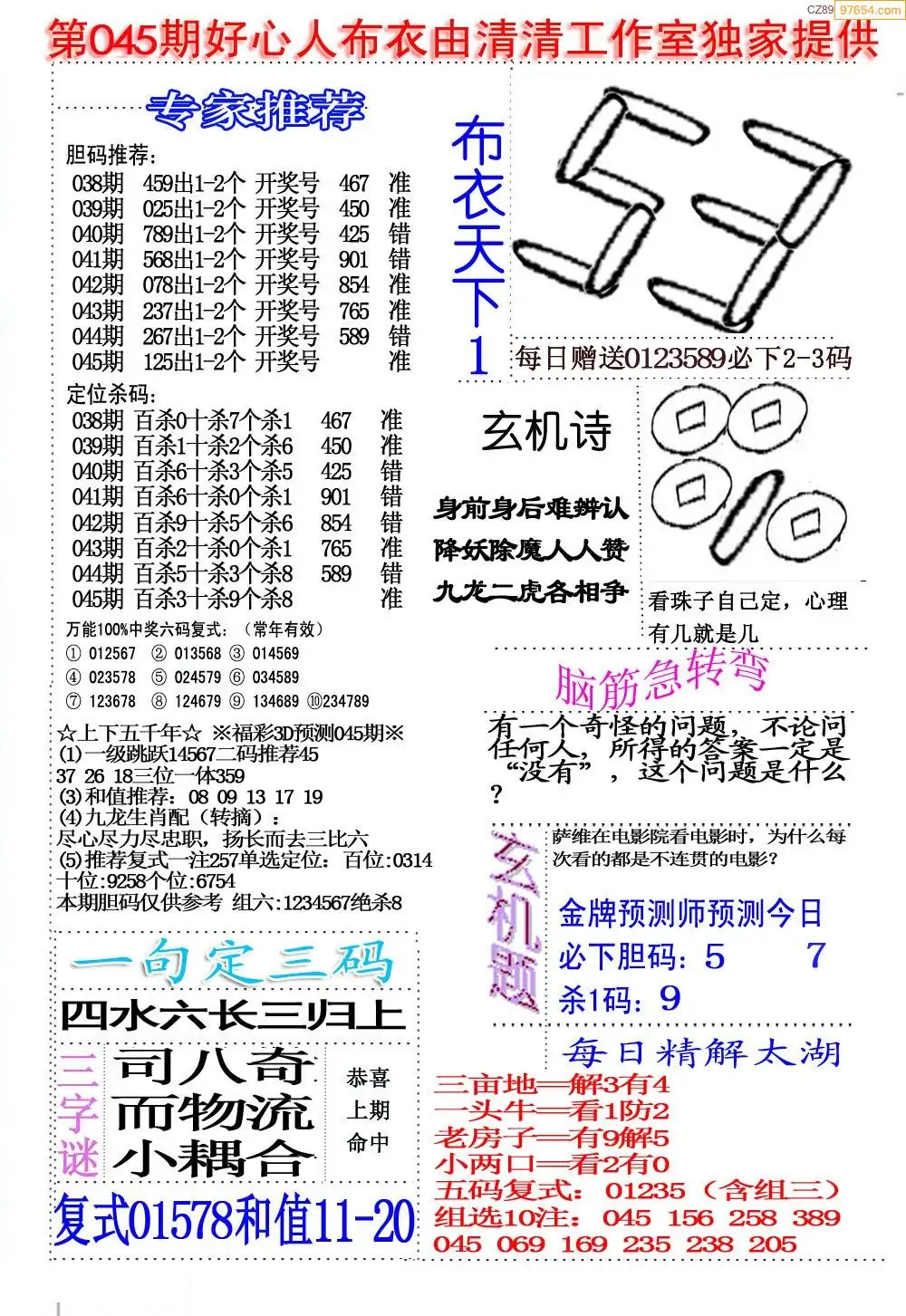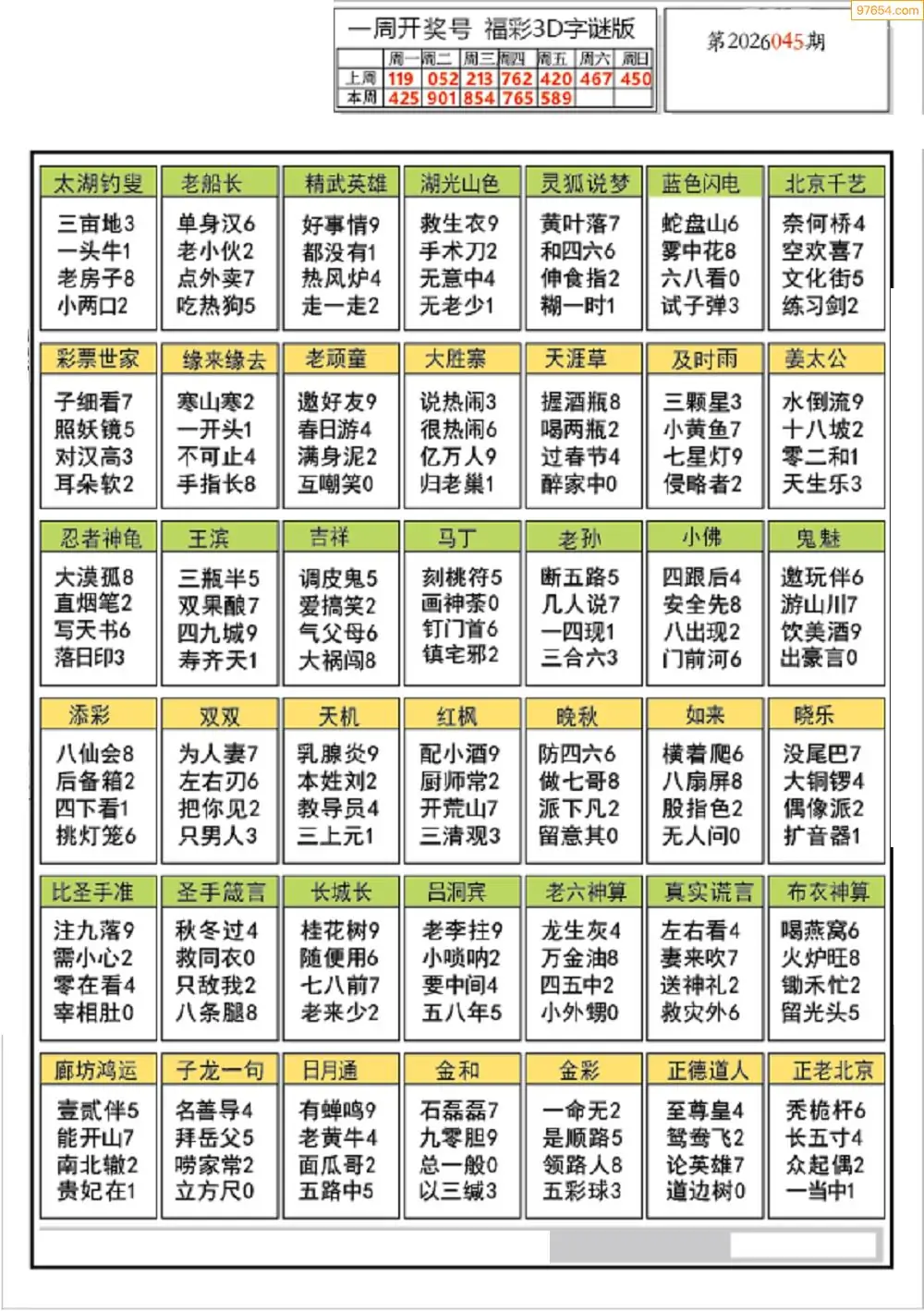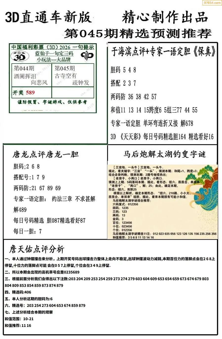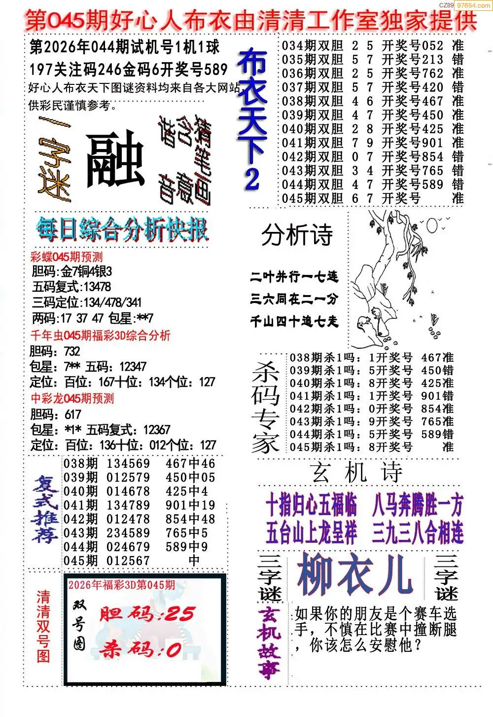 (2)26年045期本期3d图迷汇总_福彩3D图谜总汇图