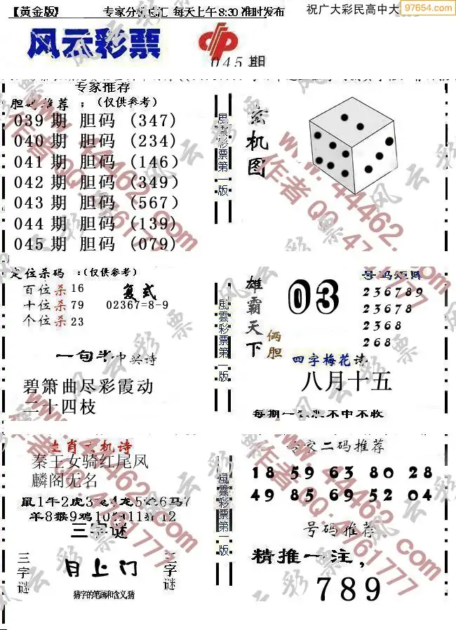 (8)26年044期今日3d各类彩报汇总