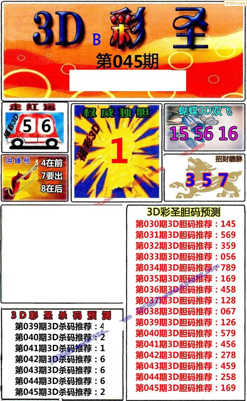 (8)26年045期今日3d各类彩报汇总